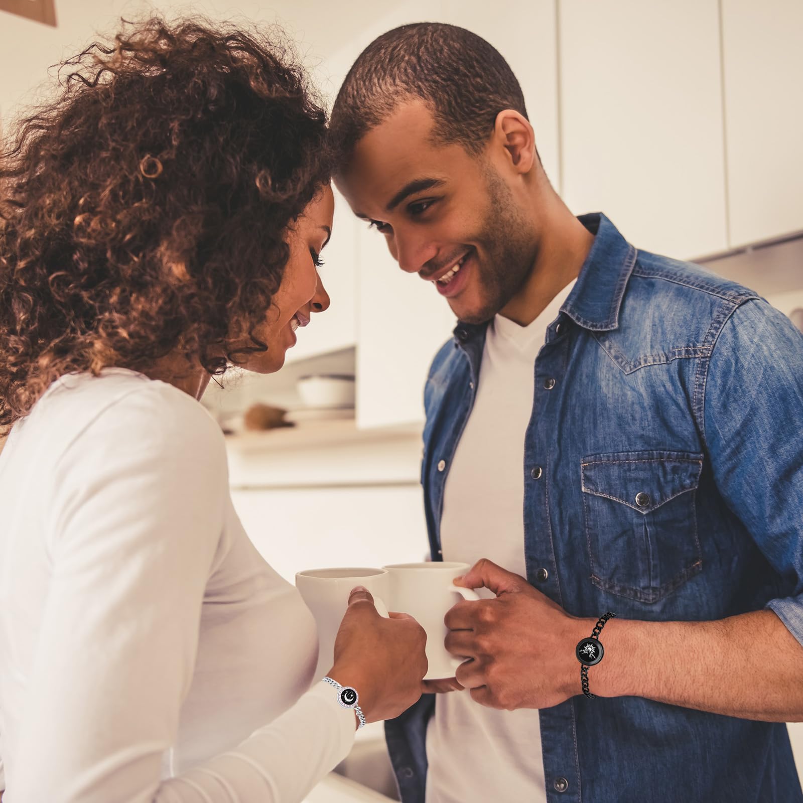Pulseras de Tacto a Distancia EAOYAO – ¿Cómo expresar tus pensamientos a tus seres queridos a distancia, amigos, familia, madre de vez en cuando, expresar tus emociones a tus seres queridos a través de la Pulsera Inteligente de Emparejamiento Bluetooth EAYAO, las personas a tu alrededor están más cerca que nunca, Este es un gran regalo para parejas, familias, Madre. Pulsera Inteligente de Emparejamiento – Simplemente toca tu pulsera y la pulsera de tu pareja parpadeará y vibrará, No importa lo lejos que estén el uno del otro, pueden mantenerse en contacto a través de las pulseras de toque a distancia EAYAO, sabiendo que estás pensando en ellos, También puedes disfrutar del amor mutuo y los pensamientos de que, siempre a tu lado, un sentimiento muy maravilloso. Pulsera de Parejas Multifuncional – Esta pulsera no es solo una joyería hermosa, sino también una pulsera que proporciona seguridad que puede enviar mensajes móviles de emergencia a números de teléfono basados en EE. UU., Cuando te encuentres en una situación de emergencia, mantén presionada la pulsera durante 3 segundos y se enviará un mensaje SOS que contenga tu ubicación a la persona a la que te has unido (la persona a la que te has unido no necesita usar la pulsera o la aplicación) puede asociar muchas pulseras, unir a muchas personas que reciben mensajes de texto de sos, número ilimitado. Pulsera de Joyería Hermosa – La pulsera de mujer EAOYAO es una cadena de «Gourmette Chain Bracelet» que simboliza el deseo y la búsqueda de libertad, independencia, trabajo duro, juventud y heroísmo del espíritu cowboy americano occidental. La pulsera de hombre es una «Cuban Link Chain Bracelet», un símbolo de la cultura hip-hop. Pulseras Inteligentes – Tu pulsera puede estar unida a múltiples pulseras de tus relaciones cercanas, pulseras de novio, novia, madre, mejores amigas en tu aplicación móvil, cuando la red esté abierta y su aplicación móvil esté iniciada sesión, haga clic en tu pulsera de toque, todos pueden recibir tu Pasando Amor y Echar de Menos. ¡También puedes configurar cada pulsera de relación para que parpadee en un color diferente para que sepas quién está Pasando Amor y Echar de Menos!