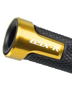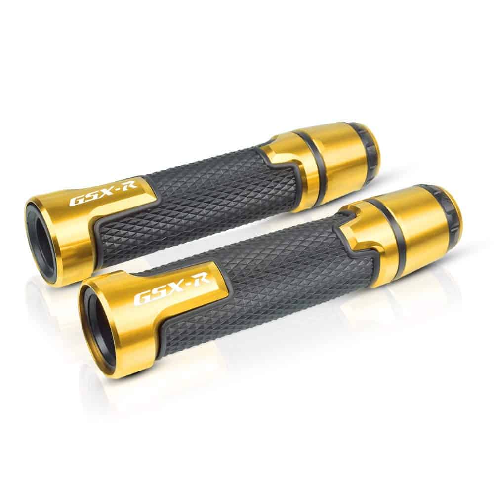 Puños de manillar de motocicleta de 7/8» 22mm fabricados en aleación de aluminio de alta calidad y goma antideslizante. Estos puños de manillar son compatibles con una amplia gama de modelos GSXR, incluyendo GSXR 125, GSXR 250, GSXR 300, GSXR 600, GSXR 750, GSXR 1000, GSXR 1300. Vienen en un elegante color dorado que se adapta perfectamente a tu moto. El agarre antideslizante de goma proporciona seguridad al conductor y evita resbalones accidentales. El paquete incluye un par de Puños de Manillar con Extremos de Agarre, con medidas de 22 mm para el lado izquierdo y 24 mm para el lado derecho. Además, cuentan con un logotipo personalizado GSX-R que ayuda a realzar visualmente la apariencia de tu motocicleta.