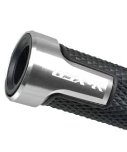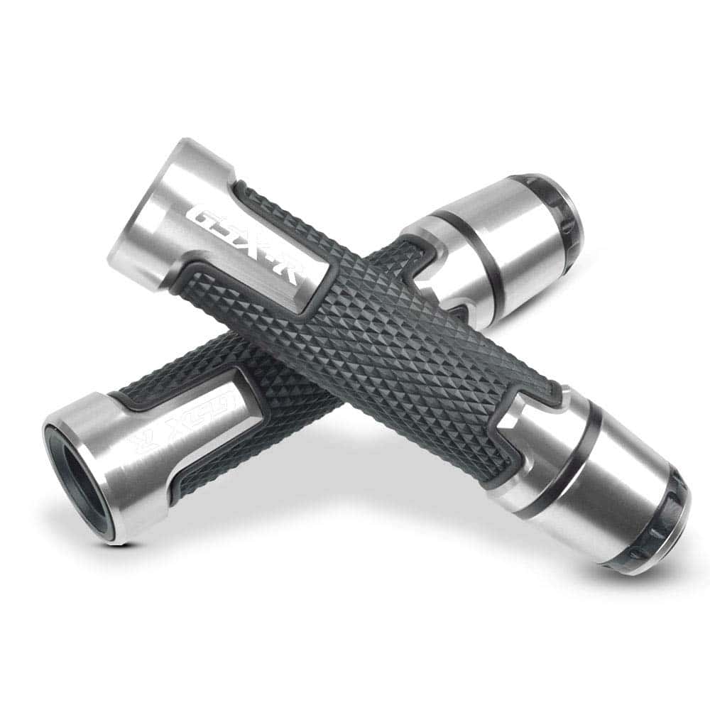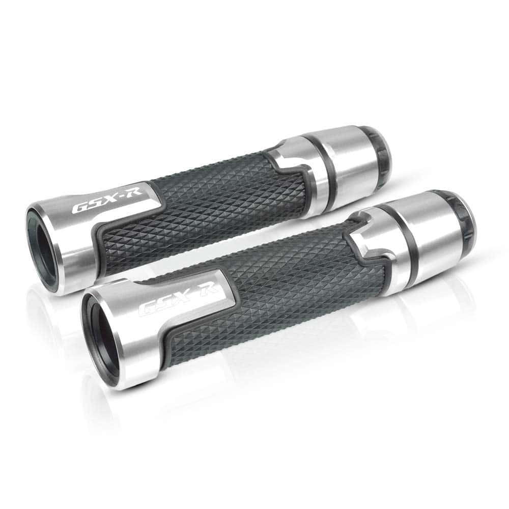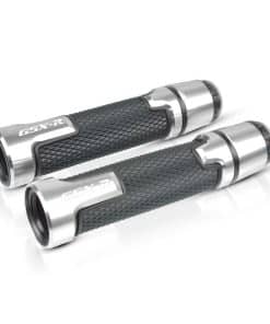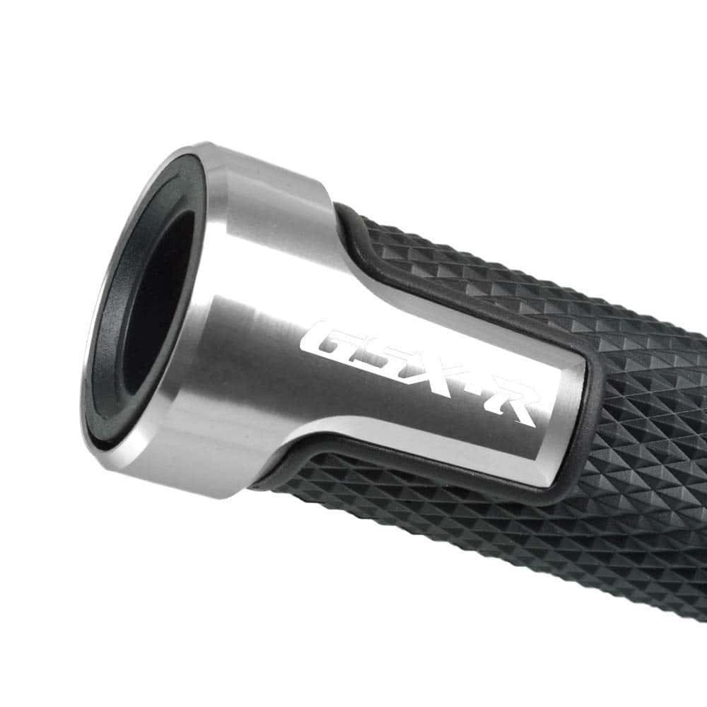 Puños de Manillar de Aluminio para Motocicleta de 7/8» 22mm, con Extremos de Agarre, diseñados para ofrecer comodidad y seguridad al conductor. Estos puños de manillar son compatibles con varios modelos de motocicletas GSXR, incluyendo GSXR 125, GSXR 250, GSXR 300, GSXR 600, GSXR 750, GSXR 1000, y GSXR 1300. Fabricados en aleación de aluminio de alta calidad y caucho antideslizante, ofrecen un excelente agarre y durabilidad. El logo personalizado GSX-R añade un toque único y deportivo a tu motocicleta. El paquete incluye un par de puños de manillar con extremos de agarre, con medidas izquierda de 22 mm y derecha de 24 mm. Renueva el aspecto de tu motocicleta con estos elegantes puños de manillar de aluminio en color plata.