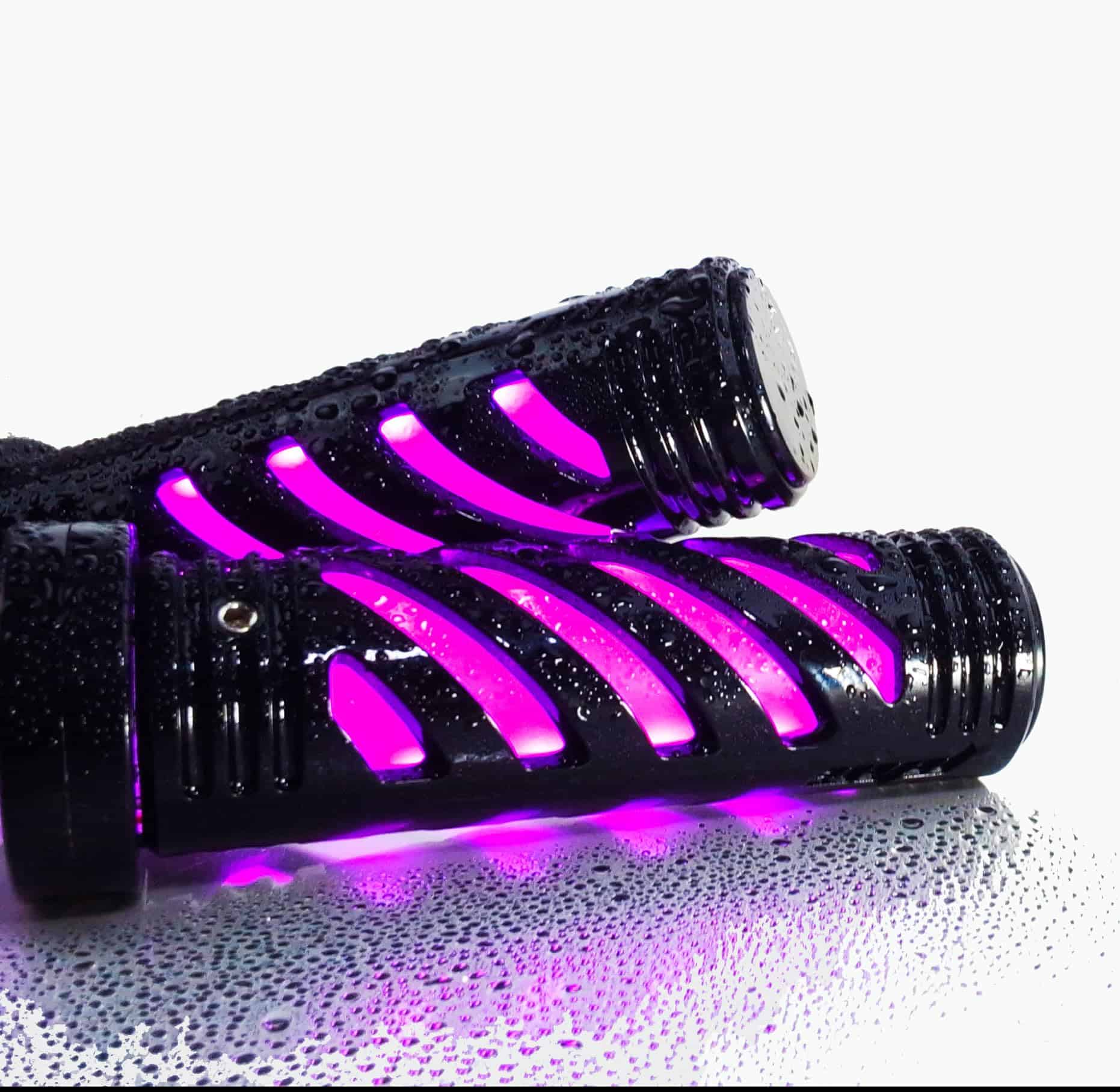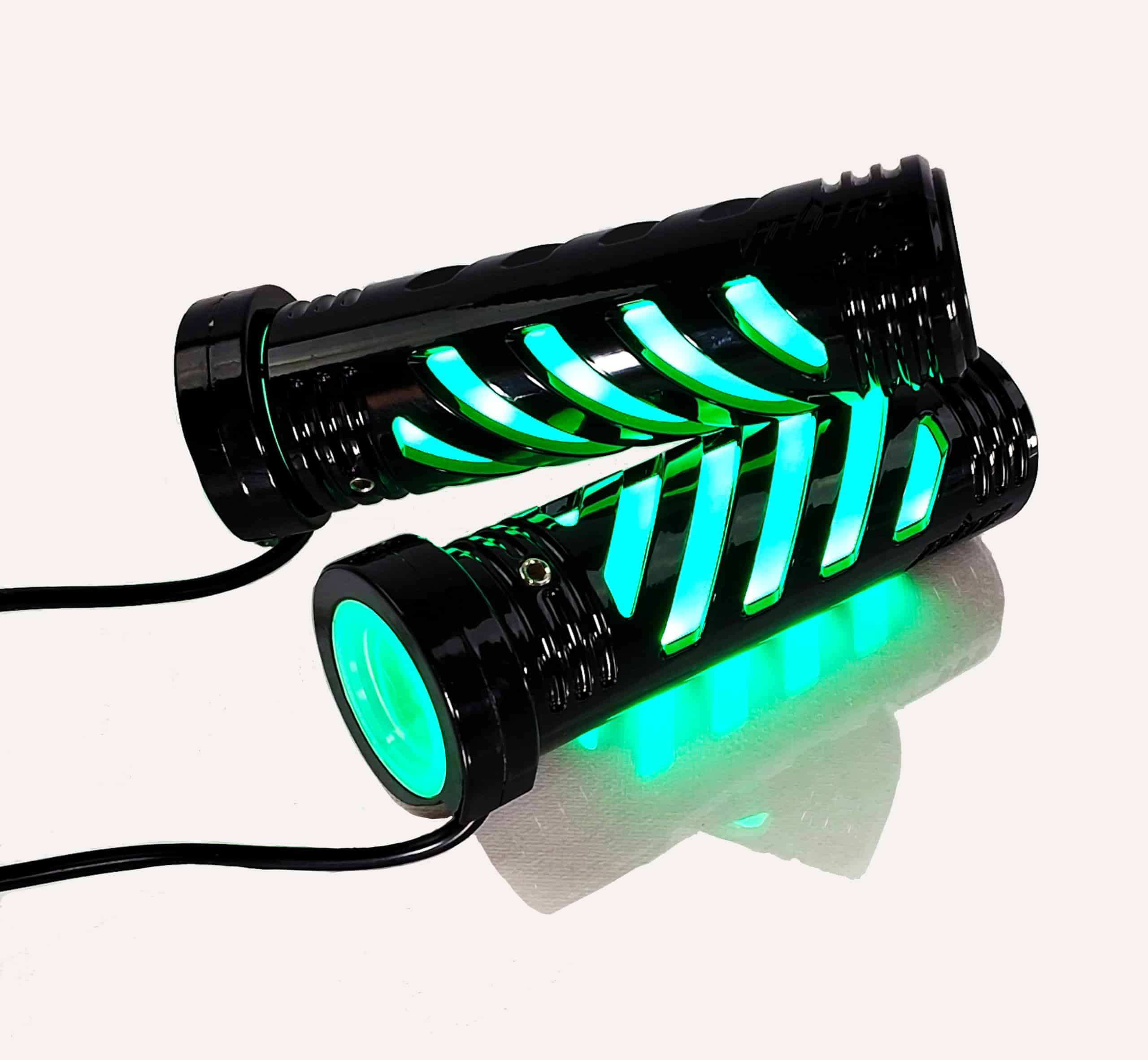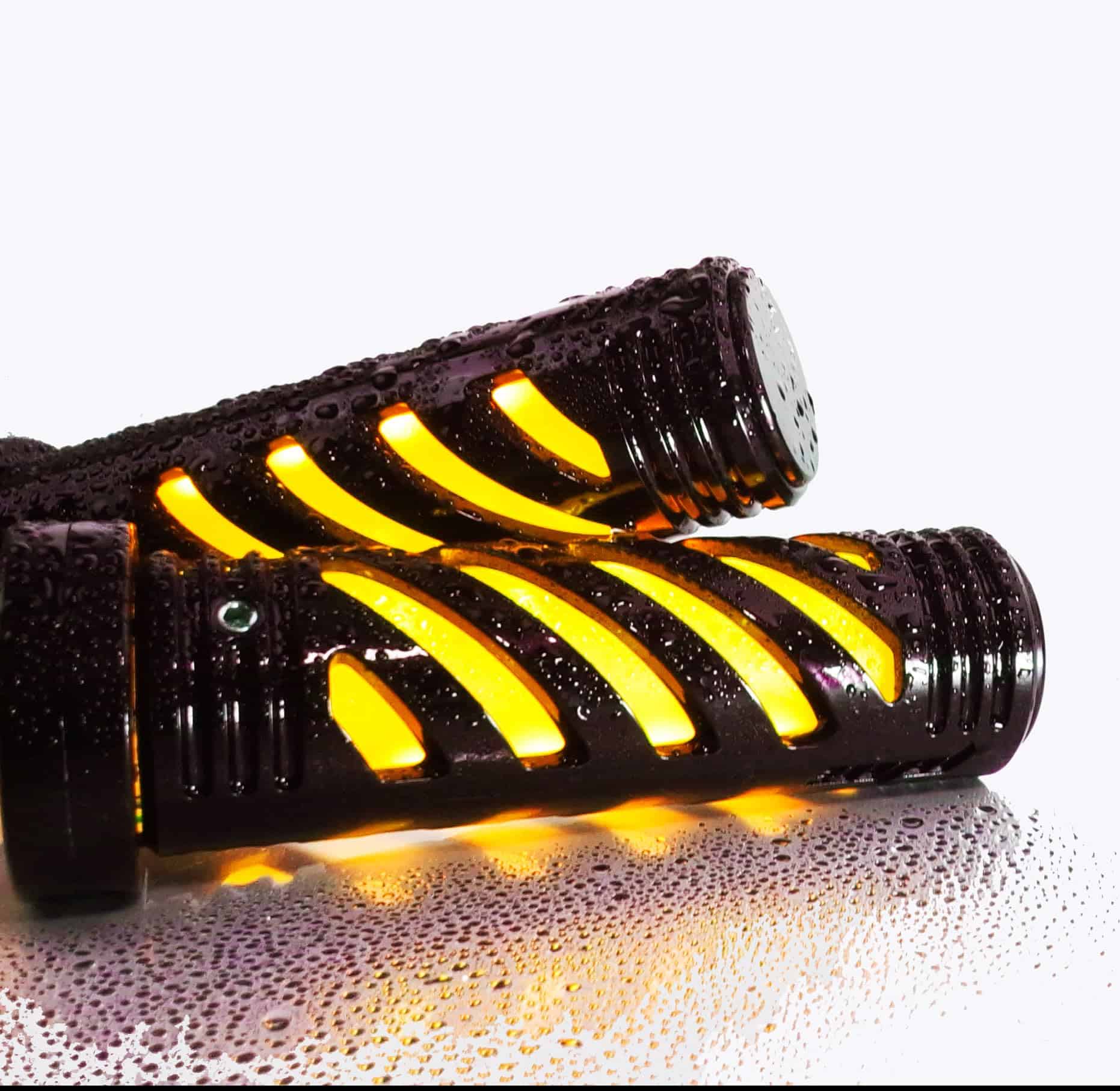 1. Puños iluminados: Luces LED RGB de varios colores integradas en los puños de la motocicleta que proporcionan visibilidad mejorada y un brillo elegante.