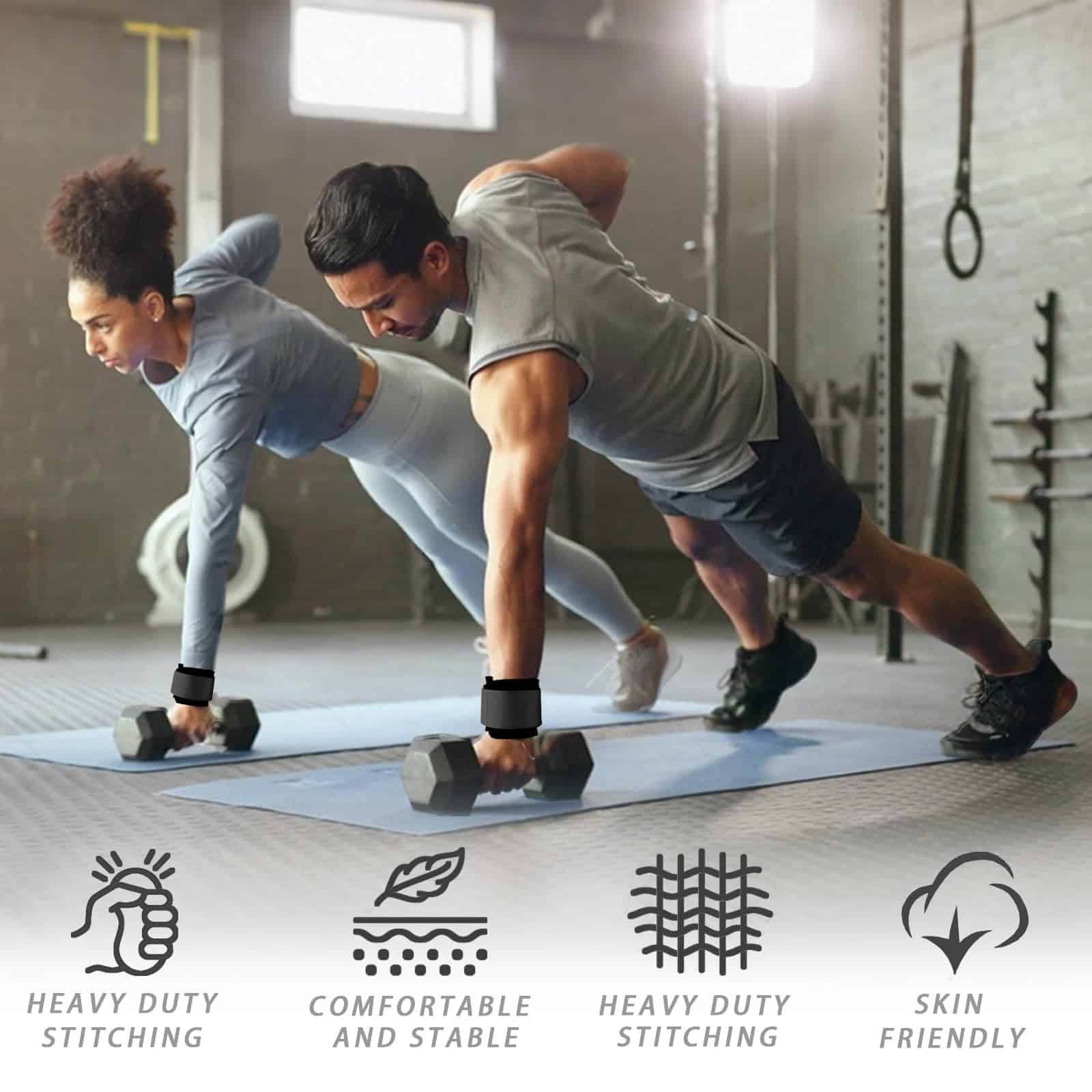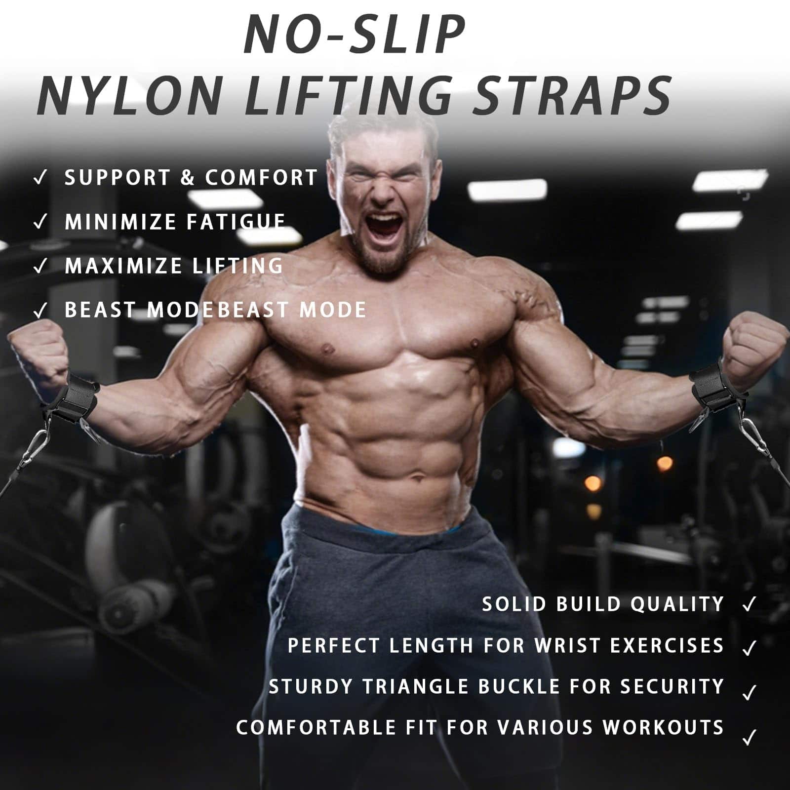 Accesorios de máquina de cable de alta resistencia y soporte de muñeca para levantamiento de pesas para elevaciones laterales, ejercicios de tracción y entrenamiento de fuerza. Diseño 2 en 1 de puños de muñeca + correas de levantamiento que combina puños acolchados para ejercicios de máquina de cable con correas de levantamiento de alta resistencia para levantamiento de pesas, ofreciendo versatilidad definitiva para movimientos de tracción, elevaciones laterales y entrenamiento de fuerza. Estabilidad mejorada de la muñeca y fuerza de agarre: asegure sus muñecas de forma segura para un mejor control durante extensiones de tríceps, curls de bíceps, jalones verticales y más, mientras que las correas de levantamiento integradas reducen la fatiga del agarre para levantamiento pesado. Construcción duradera y cómoda: construida con costuras reforzadas, hebillas de metal fuertes y acolchado de neopreno grueso, asegurando un rendimiento duradero y comodidad en las muñecas durante los entrenamientos intensos. Ajustable y ajuste universal: diseñado con correas de velcro de alta resistencia, estos puños de muñeca proporcionan un ajuste personalizable para diferentes tamaños de muñeca, haciéndolos ideales tanto para hombres como para mujeres. Perfecto para entrenamiento de fuerza y culturismo: ya sea que se enfoque en ejercicios de aislamiento con una máquina de cable o levantamiento de pesas pesadas, este juego de doble función proporciona el soporte que necesita para la sobrecarga progresiva y el crecimiento muscular.