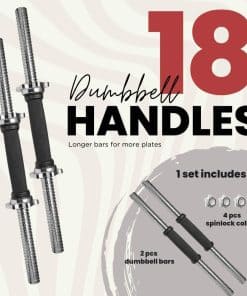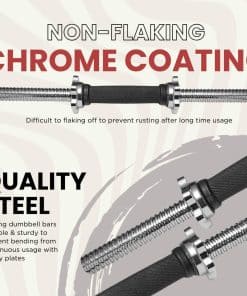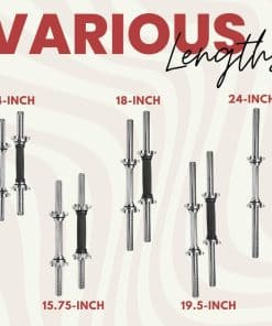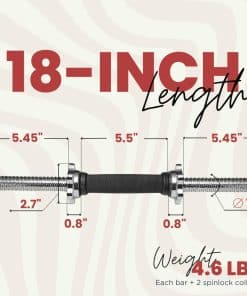 Los puños para mancuernas estándar A2ZCare de 18 pulgadas con agarre de goma son el equipo perfecto para aquellos que desean un agarre seguro y cómodo durante sus entrenamientos. Están hechos de acero de calidad con un revestimiento de cromo texturizado que no se descascara, lo que los hace duraderos y resistentes. Estos puños pueden soportar el peso de los discos pesados sin doblarse y evitan la oxidación después de un uso prolongado.
