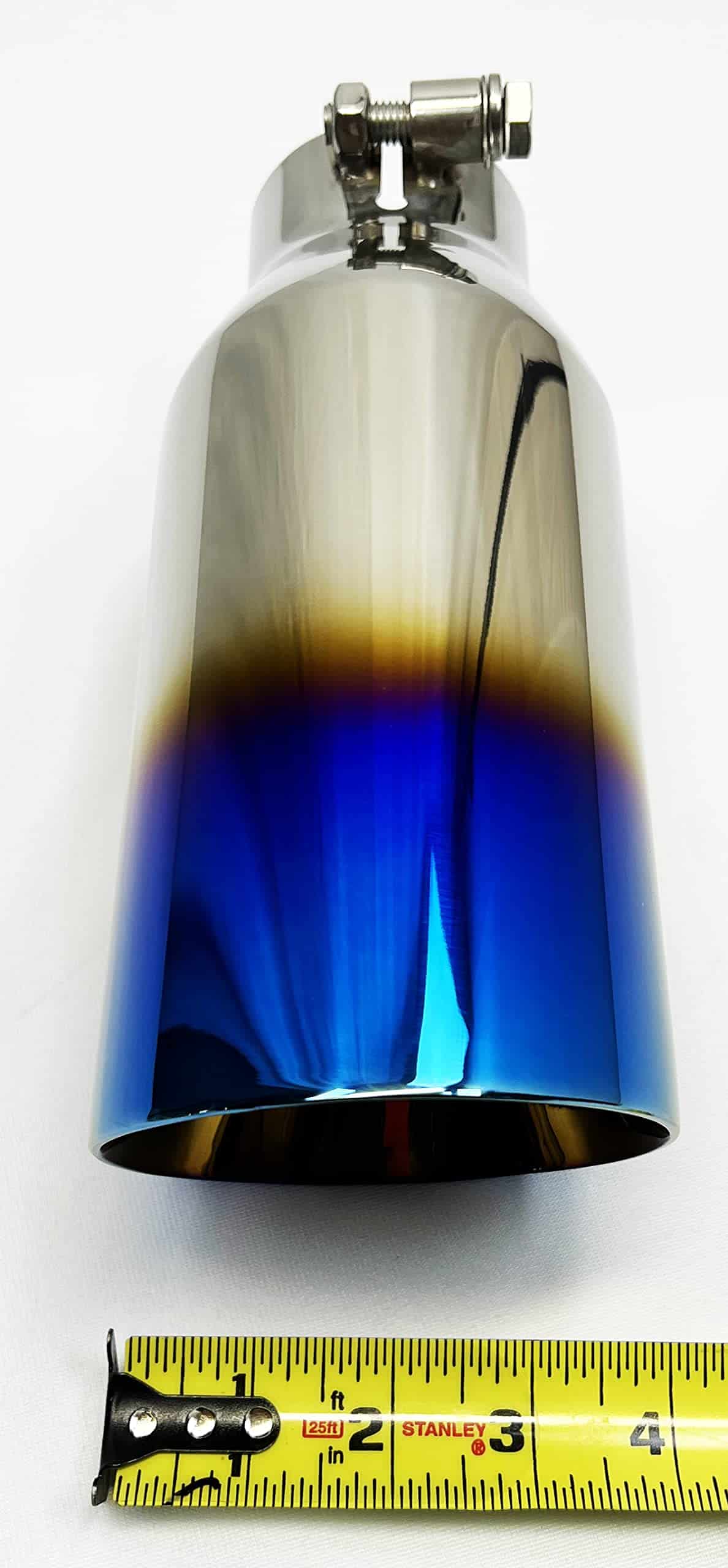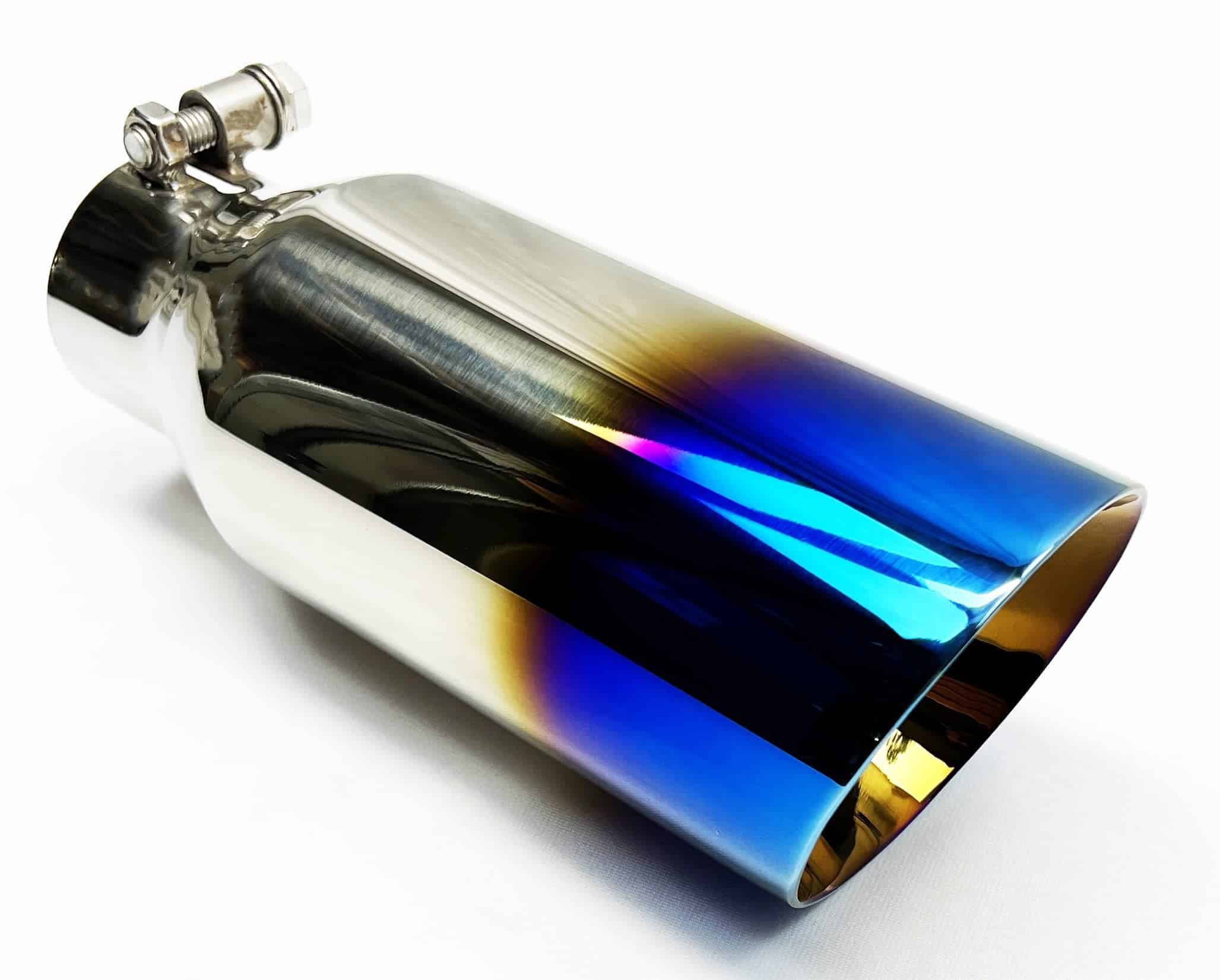 Punta de escape 4.00″ OD X 10.00″ Largo 2.50″ Entrada Tornillo En WDW40010-BOSS-250-BF Doble Pared 304 Acero Inoxidable Llama Azul Wesdon Punta de Escape—Esto está hecho para adaptarse a un tubo de escape de 2.50 pulgadas. Por favor, mida su tubo de escape para asegurarse de que tenga una salida de 2.50″ y que tenga el espacio suficiente para que encaje.