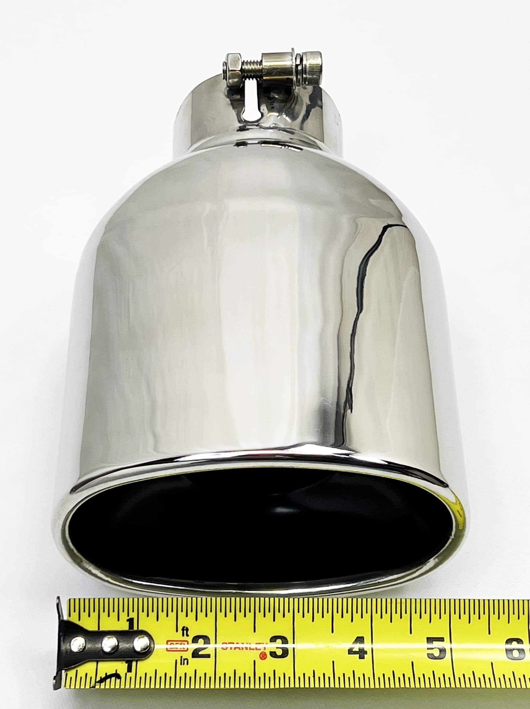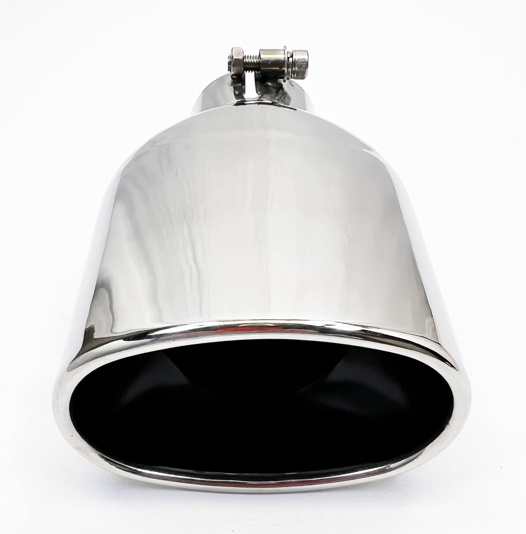 Punta de escape ovalada negra de 5.50″ x 3.5″ de diámetro exterior 7.50″ de largo con entrada de 2.50″ W550750-250-BOSS-GBK-ID de acero inoxidable 304 de doble pared resonada de Wesdon—Está fabricada para ajustarse a un tubo de escape de 2.50 pulgadas. Por favor, mida su tubo de escape para asegurarse de que tiene una salida de tubo de escape de 2.50″ y que tiene espacio para que encaje.