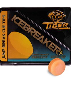Tiger Products se desafió a sí misma en la creación de una punta de taco de salto y rompimiento que facilita al usuario ejecutar disparos aéreos de salto en espacios reducidos y ejecutar un rompimiento de iceberg. Todo esto sin sacrificar el control preciso de la bola de taco y evitando el temido error. Seguido de una tarea en curso de investigación y desarrollo incansable, Tiger Products ha creado la punta de taco de salto y rompimiento definitiva del futuro! Esta punta de taco híbrida HDMC (compuesto de microcélulas de alta densidad) utiliza una dureza extrema para la potencia sin comprometer la sensación y precisión. Toda la potencia que aplicas a tu golpe se transfiere de inmediato y con precisión a la bola de taco sin riesgo de error. El resultado es: velocidades de disparo de rompimiento aumentadas y disparos de salto ‘ligeros como una pluma’. ¡Puntas de taco Icebreaker+, ¡potencia máxima más allá de la imaginación! Especificaciones del producto: Tipo de punta: punta de salto/rompimiento. Material: compuesto de microcélulas de alta densidad. Dureza: Súper Dura+ (7). Durometro Tiger (Tipo A): 99+. Durometro Mueller (Tipo B/C): 96-99. Diámetro de la punta: 14.5 mm. Fabricado en EE. UU. – ¡Las puntas se venden individualmente!