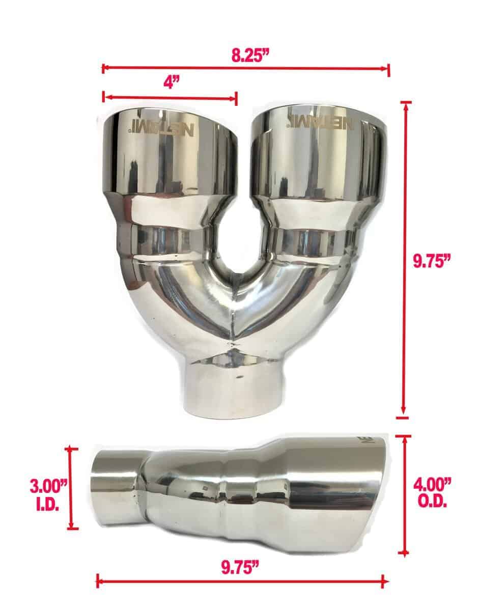 Puntas de Escape NETAMI de 3″ de Entrada 4″ de Salida