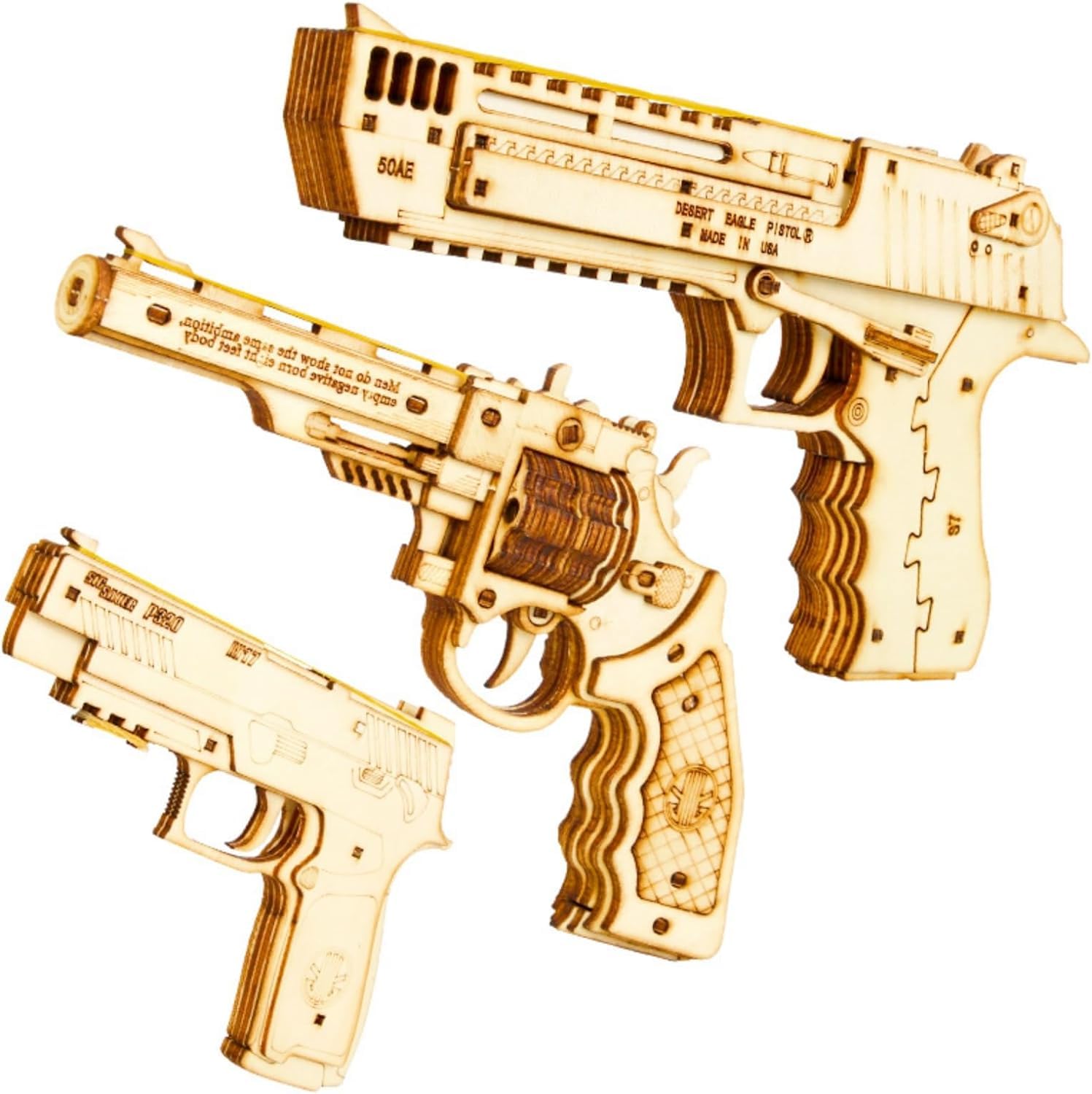 1. Valor por dinero: Disfruta de una experiencia de rompecabezas inigualable con este juego de madera 3D con pistola de gomas, que incluye tres réplicas icónicas: Revólver, P320 y Desert Eagle, cada una con un total de 244 componentes precisamente elaborados. El juego supera a sus competidores en términos de jugabilidad y es perfecto para reuniones sociales con familiares y amigos, cultivando conexiones mientras participas en divertidos desafíos de construcción.