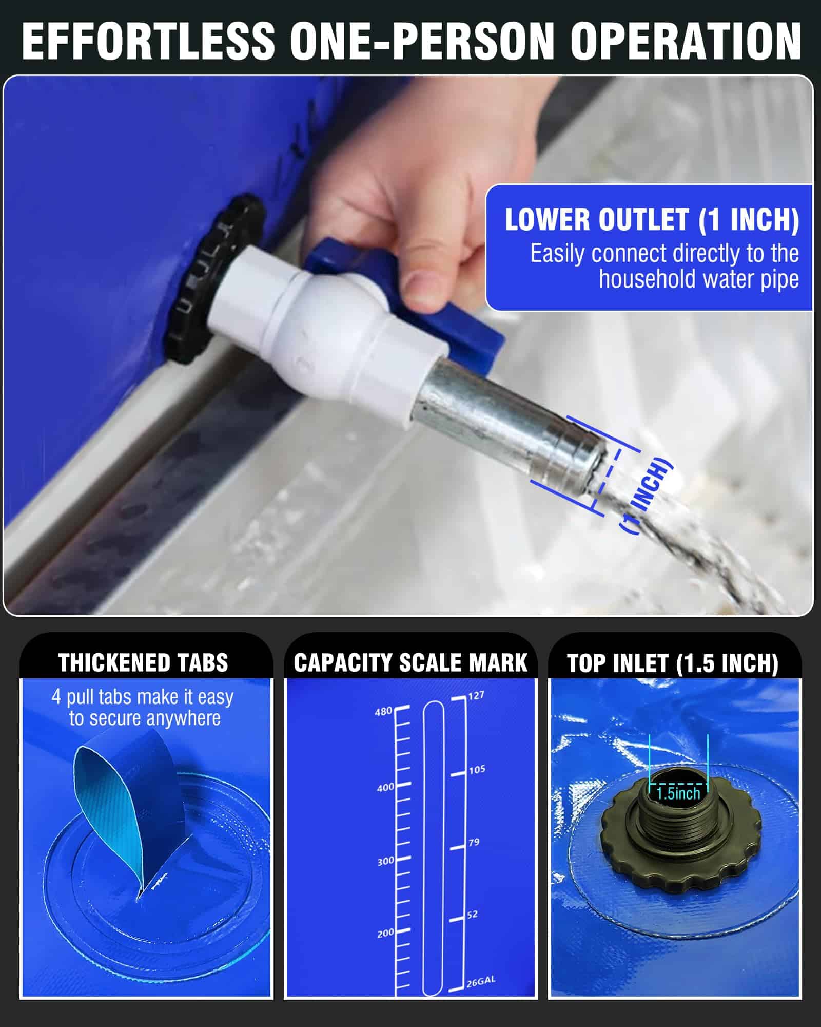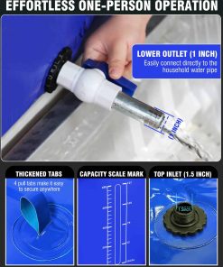 2. Comodidad simplificada: Nuestra bolsa de agua tipo bañera está equipada con un grifo de plástico con una salida de agua roscada de 1 pulgada de diámetro y una entrada de 1.5 pulgadas de diámetro, lo que permite la conexión directa a una manguera de agua doméstica. Con 4 anillas de extracción en la parte superior, se puede asegurar fácilmente en la cama de una camioneta pickup, lo que la hace conveniente de transportar.