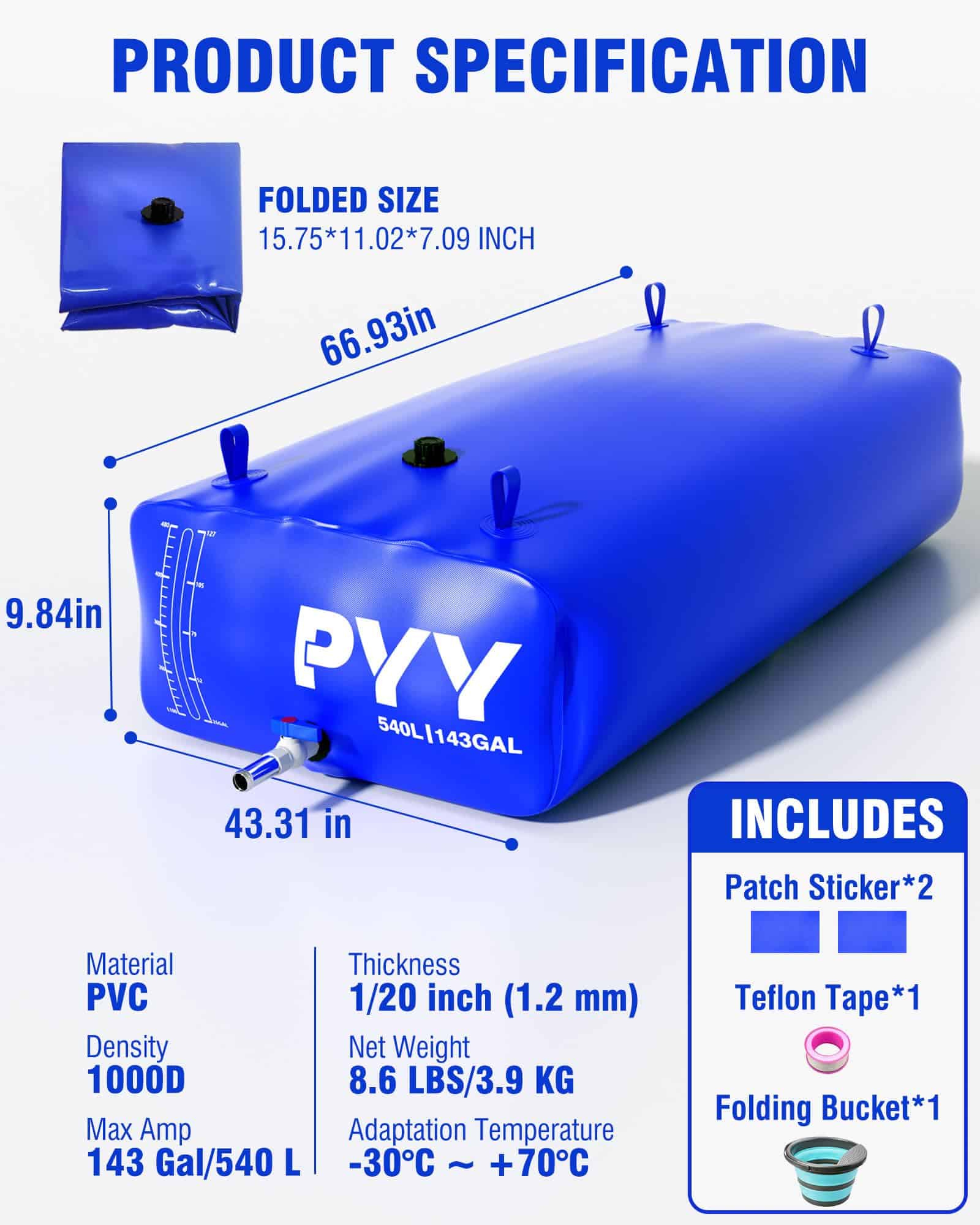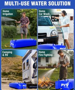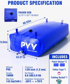 4. Diseño que ahorra espacio: El tanque de almacenamiento de agua PYY presenta un diseño liviano y plegable, que ahorra espacio de almacenamiento. Cuando está lleno de agua, sus dimensiones son 66.93 43.31 9.84 pulgadas, y cuando está plegado, mide solo 15.75 11.02 7.09 pulgadas. Ideal para aquellos que están constantemente en movimiento o enfrentan fuentes de agua inciertas, proporciona una solución efectiva.