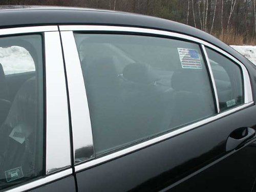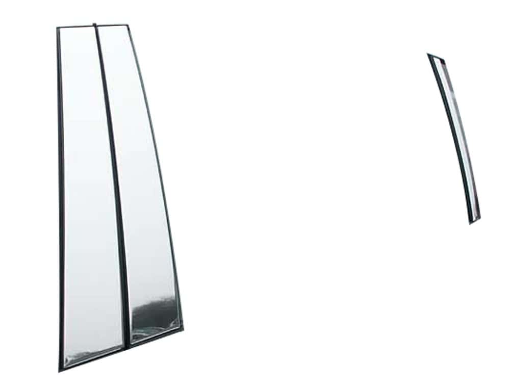 La Moldura de Pilar es un accesorio diseñado para cubrir las secciones verticales de pilar entre las ventanas de las puertas del vehículo. Los juegos de moldura de pilar pueden incluir cualquier número de piezas, incluidos pilares centrales, piezas triangulares de esquina y tiras que separan segmentos de ventana. Consulte el listado de productos detallado para obtener más información. Los juegos de molduras de pilar de calidad automotriz de QAA son duraderos y están garantizados para durar. Están preformados para cada modelo de vehículo a partir de acero inoxidable altamente pulido, con respaldo completo de cinta adhesiva de espuma acrílica 3M, y están hechos para mejorar la apariencia de su vehículo. Todo el acero inoxidable de QAA está pulido a un brillo de espejo, dándole un aspecto CROMADO. Las superficies pulidas están protegidas por una película de plástico que se debe quitar después de la instalación. La moldura de pilar es fácil de instalar con una aplicación de «pelar y pegar» de la cinta 3M preaplicada en cada pieza; no se requiere perforar, cortar ni hacer modificaciones. La unión es hermética al agua y durará toda la vida.