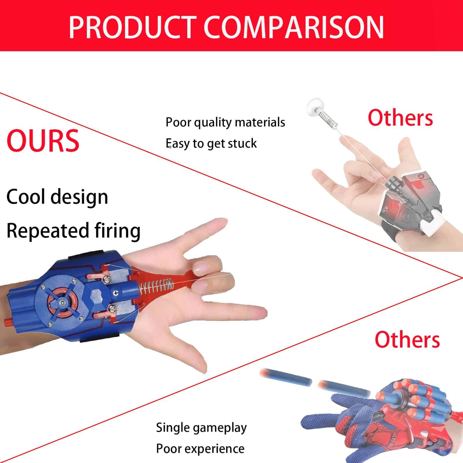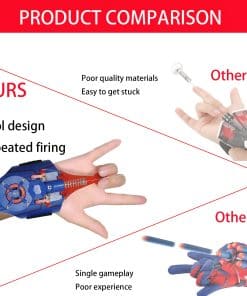3. ¡Producto de Alta Calidad! Los lanzadores de telarañas para niños, moldeados mediante impresión 3D, pulidos a mano. resistente y cosido de forma segura, duradero, seguro y confiable, flexible y fácil de transportar Lanzador de Seda de Araña para Niños Después de muchas pruebas contra caídas, la calidad está garantizada.