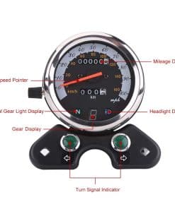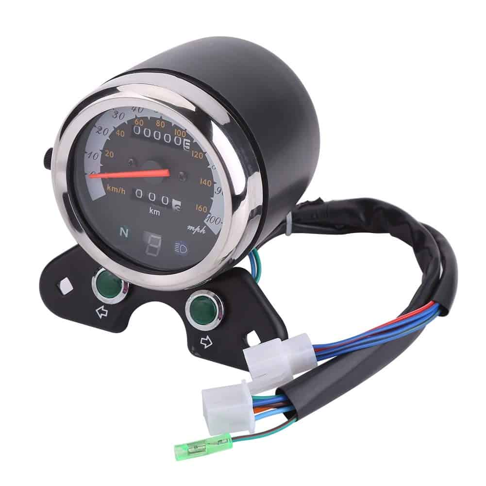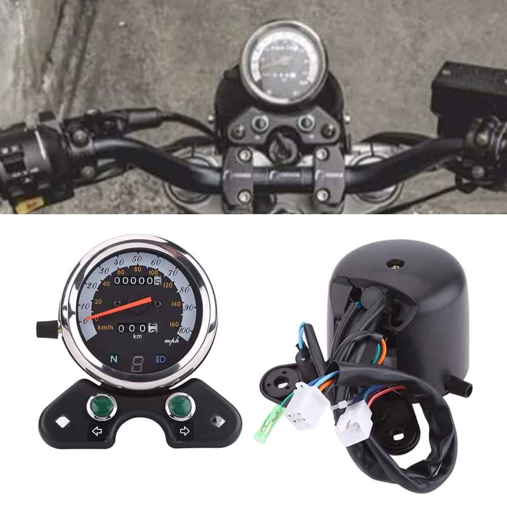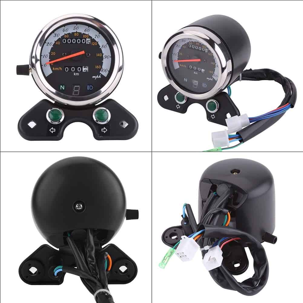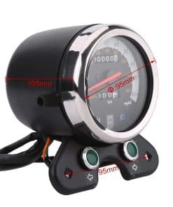 4. Fuerte compatibilidad — El velocímetro odómetro para motocicleta es adecuado para la mayoría de las motocicletas con distancia de orificio de montaje de 95 mm, como para Suzuki, para cafe racers, etc. Tamaño: 95 x 105 mm, Distancia de orificio de montaje: 95 mm.