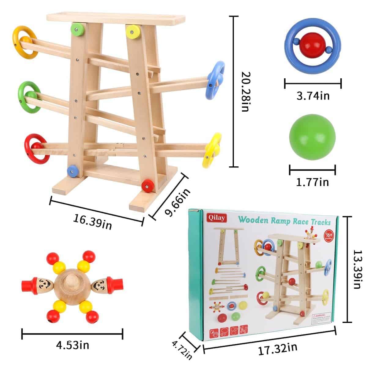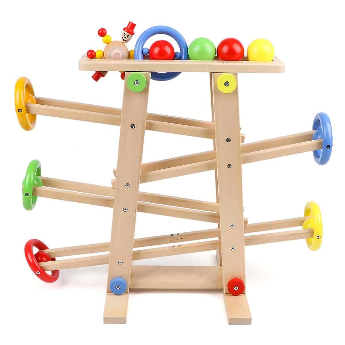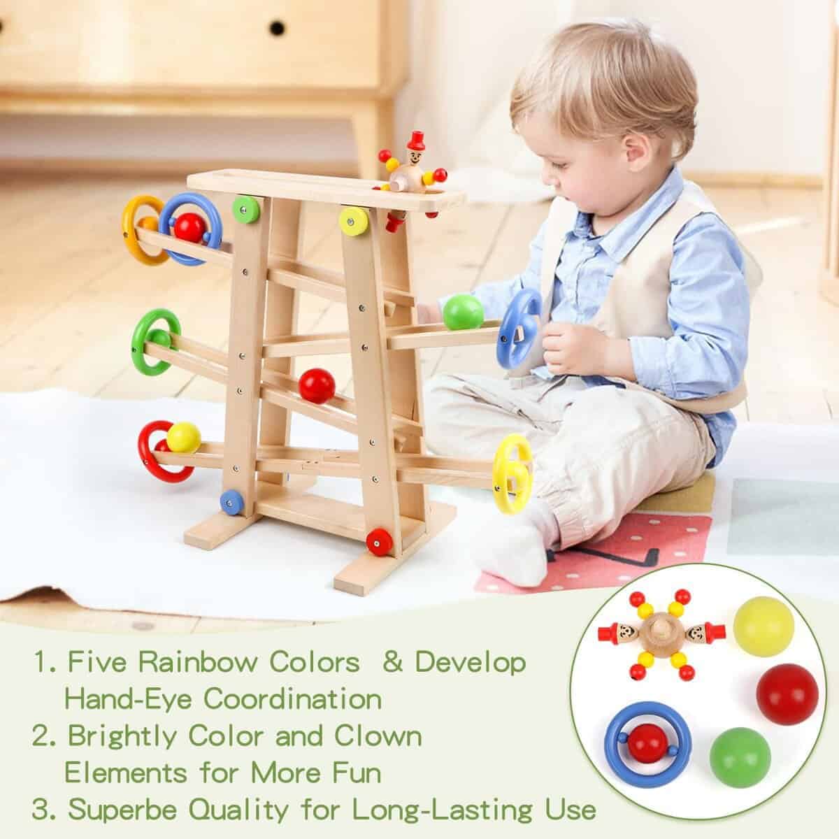 Qilay Pista de Carreras de Madera para Niños de 1 a 3 Años,