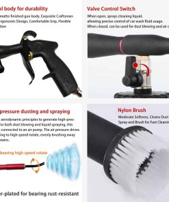 Especialmente diseñada para propietarios de automóviles en América, la Pistola de Limpieza de Vórtice QiLeeCar utiliza aire comprimido para crear una potente rafaga de aire que elimina el polvo, los desechos y el agua de espacios estrechos en su automóvil. Con solo 4 sencillos pasos, puede limpiar su automóvil de manera rápida y fácil. Esta herramienta de limpieza de alta presión ofrece una limpieza versátil tanto para el interior como para el exterior de su automóvil, así como motores y más. Ideal para prelavado, secado y llegar a rincones ocultos. Además, es ideal para uso doméstico en bicicletas, motocicletas, patios, piscinas, sillas de playa, vidrio, paredes, persianas, alfombras, estuches de computadoras, hornos de microondas, instalaciones de cocina y más. La Pistola de Limpieza de Vórtice QiLeeCar ahorra tiempo y esfuerzo al cortar las tareas de limpieza de automóviles, haciendo que el detallado sea más rápido y sencillo.