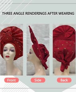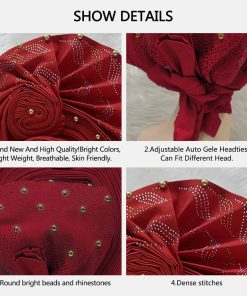 QliHut Nigerian Headtie African Head Wraps Auto Gele Rojo es una hermosa y elegante opción para bodas tradicionales y eventos festivos. Este impresionante Gele Nigeriano está adornado con cuentas y piedras, lo que lo convierte en una pieza de lujo y exquisita artesanía. El Auto Gele es de tamaño único y ajustable, lo que garantiza un ajuste cómodo para la mayoría de las personas. El diseño en forma de abanico y los colores vibrantes hacen que este Gele sea una opción perfecta para compromisos y bodas. Asegúrate de lucir elegante y sofisticada con este Gele Nigeriano de QliHut.
