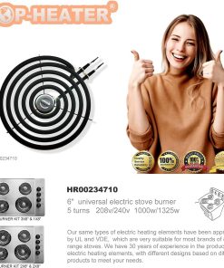 5. QUÉ INCLUYE: 2 piezas de Elemento de Quemador de Estufa Eléctrica de 6″ WB30M1 de 5 vueltas, 208V 1000W, 240V 1325W. Por favor, verifica las dimensiones mostradas en la imagen 7 para asegurarte de que el elemento de quemador de la estufa se ajusta a tu estufa eléctrica. Si no estás seguro al respecto, no dudes en enviarnos un correo electrónico para confirmar la compatibilidad. Te responderemos lo antes posible.