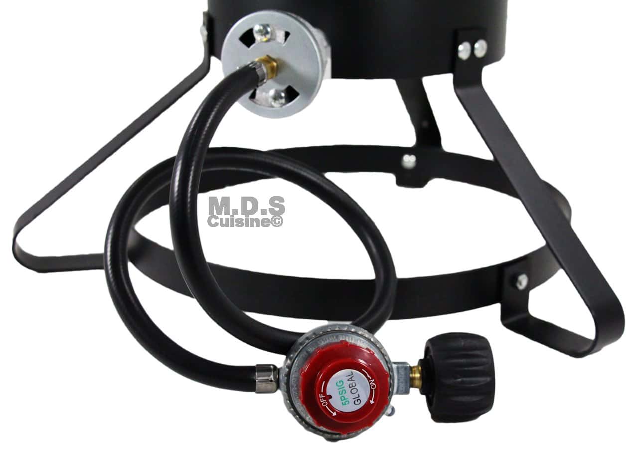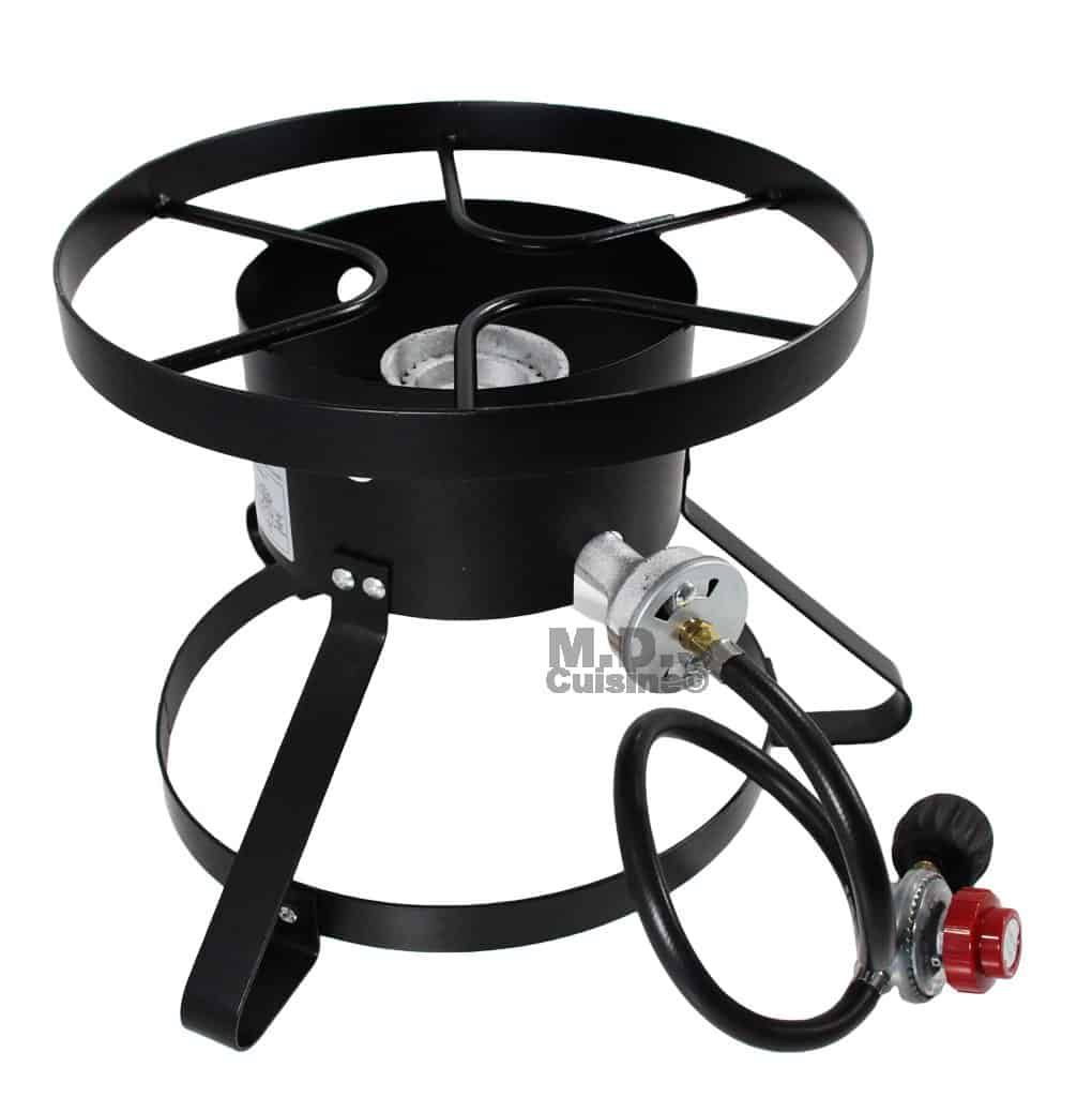 Quemador de Gas para Cocinar al Aire Libre de Alta Presión, Estufa de Propano Individual para Acampar, Quemador de Gas para Cocinar al Aire Libre. Esta Estufa de Gas al Aire Libre Clásica de Alta Presión con Pantalla Antiviento. ¡Simplemente la mejor del mercado! Resistencia, función y seguridad. y el quemador de gas al aire libre más eficiente vendido. Esa es la historia. El quemador de gas al aire libre más fuerte fabricado comercialmente, y portátil para acampar, RVs, tailgating y fiestas en el patio trasero. Aquí tienes las últimas noticias sobre este Quemador de 185,000 BTU: Marco de acero soldado de una pieza, con acabado resistente a la intemperie. Básicamente hecho para durar para siempre con un cuidado mínimo. Diseño de trípode de patas anchas para mayor estabilidad; la llama es ajustable mediante la válvula de aguja en el kit de regulador incluido, para un amplio rango de control de la llama. Regulador / válvula UL listado de 5 psi con manguera de 4 pies de alta presión; La pantalla antiviento de 360 grados te permite mantener una llama azul constante; Bombea hasta un máximo de 185,000 BTUs; Superficie de cocción de 14″ de diámetro; 13″ de altura; Pesa aproximadamente 18 lbs. Aquí tienes, la elección tradicional, confiable e inteligente para cocinar al aire libre. Desde el tailgating hasta el chef del patio trasero, la cocción de chili hasta la captura diaria de cangrejos, o la elaboración casera de temporada; el Clásico Quemador de Propano de Alta Presión para Cocina al Aire Libre SP10 es confiable, fácil de usar y portátil. La estufa cuenta con un sólido marco de acero soldado en una pieza con tres patas extendidas, una amplia superficie de cocción de 14 pulgadas de diámetro y protección completa antiviento para cocinar en días ventosos. También cuenta con una manguera de acero trenzado de 48 pulgadas, un regulador de 5 psi para una alta salida de BTU y una válvula de latón para un control completo de la intensidad de la llama. Con solo 18 pulgadas de perfil por 13 pulgadas de altura, este quemador compacto portátil es la elección perfecta para cualquier excursión al aire libre.