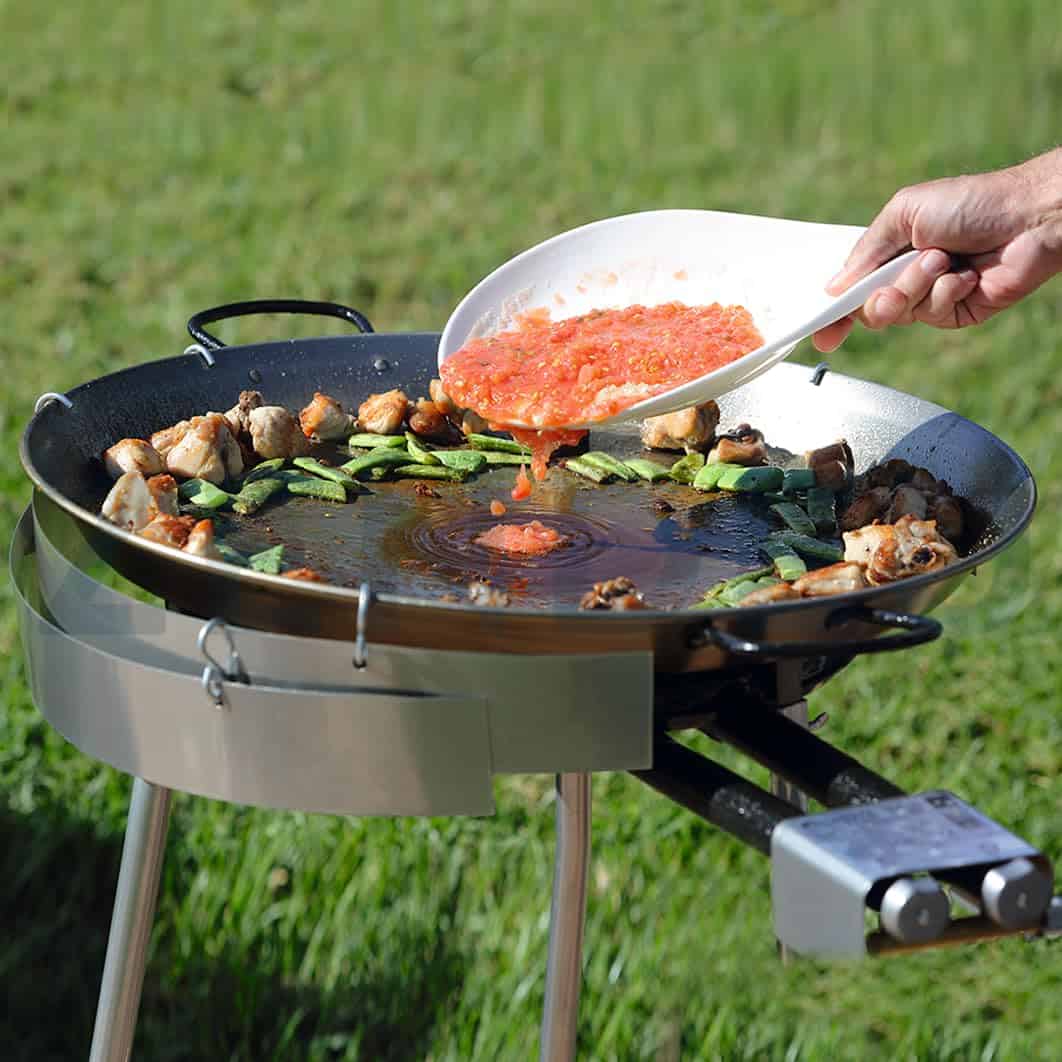 1. QUEMADOR DE GAS PARA PAELLA (AL AIRE LIBRE): Este resistente quemador de gas de triple anillo es un potente quemador de butano/propano que garantiza un suministro estable y uniforme de calor a su paella, lo que resulta en un plato de paella más delicioso. Diseñado para cocinar al aire libre, es ideal para excursiones de camping, picnics y barbacoas.
