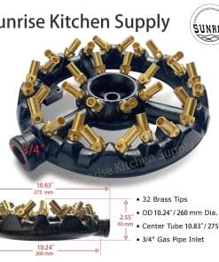 Quemador redondo de jet de 32 puntas, gas natural. Perfecto para cocinas de wok. Tubería de 3/4″. Ideal para uso en restaurantes.