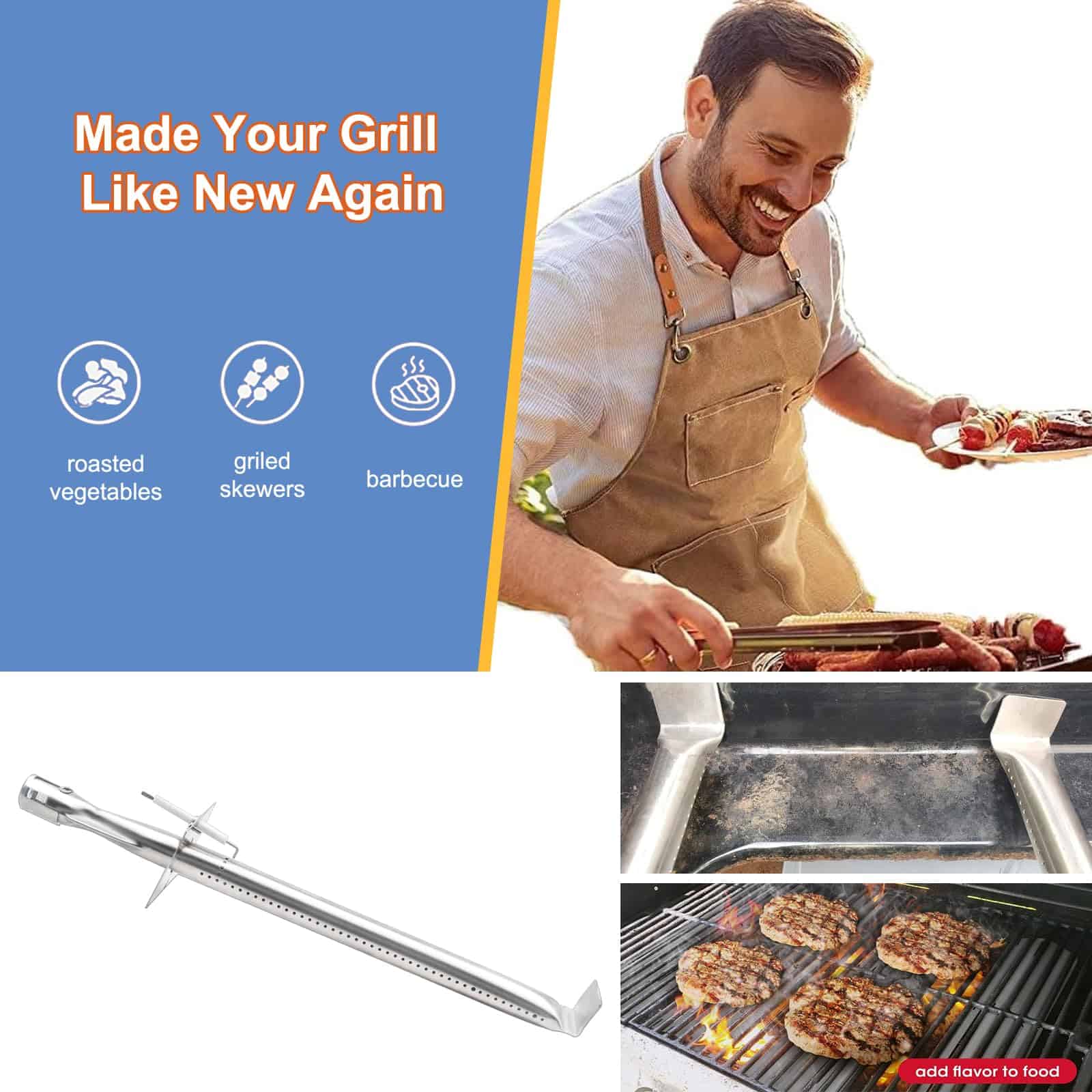 Reemplace el quemador de su parrilla Vermont Castings con este tubo de quemador de acero inoxidable de alta calidad. Este tubo de quemador es compatible con varios modelos de parrillas Vermont Castings, así como con parrillas Jenn Air y Great Outdoors. Con dimensiones de 17″ x 1″, este tubo de quemador es una excelente opción para mantener su parrilla funcionando de manera óptima. No se conforme con partes de baja calidad, elija esta pieza de repuesto duradera y confiable para mantener su parrilla en condiciones óptimas de cocción.