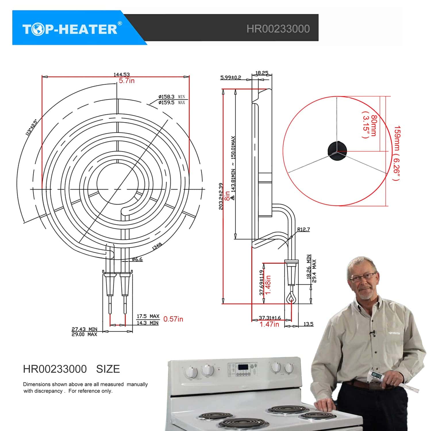 Quemador eléctrico de cocina MP15YA, Quemador 233000 6”