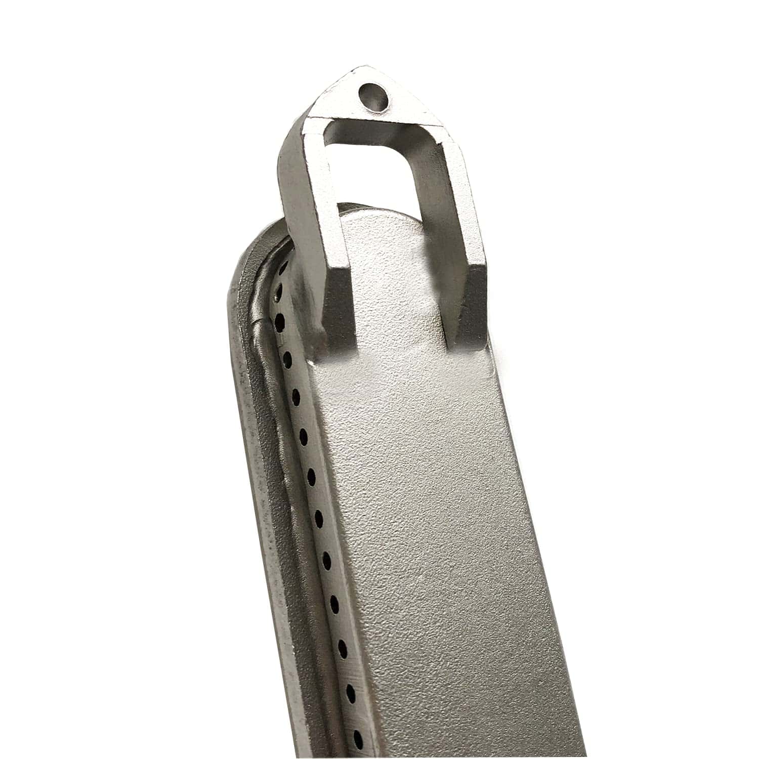Quemador oval de acero inoxidable fundido duradero compatible con varios modelos de Barbeques Galore, Grand Hall, Turbo y Kenmore. Dimensiones: 16-1/4″ x 2-1/16″. Reemplaza a quemadores ovalados de hierro fundido. Recomendamos medir sus piezas originales y compararlo con lo que hemos enumerado antes de realizar el pedido. ¡Obtenga la calidad y durabilidad que su parrilla merece con este quemador de acero inoxidable fundido de GRILLJOB!