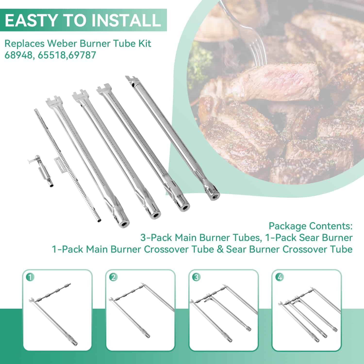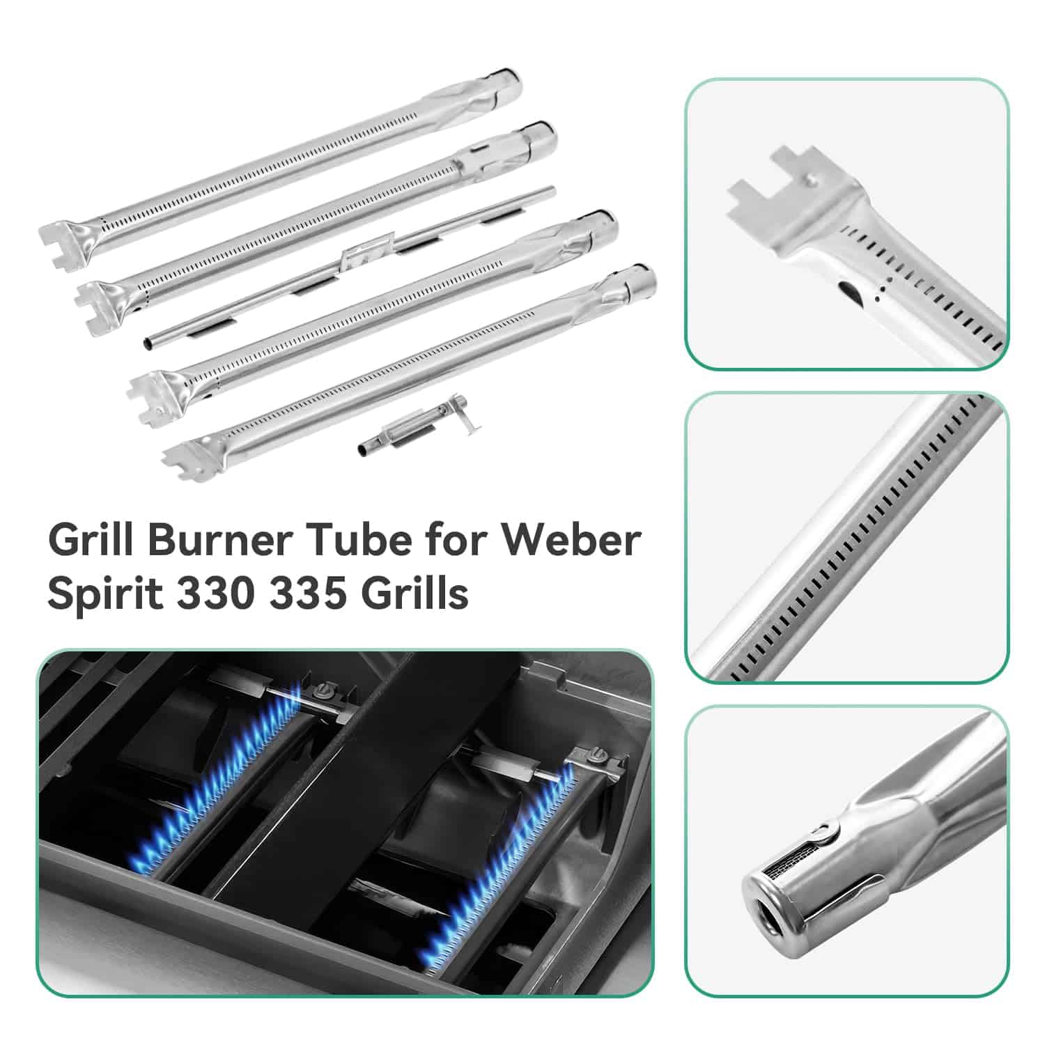 3. Material Quemador de acero inoxidable 304, Paquete 3 Quemadores Principales, 1 Quemador Sear, 1 Tubo de Crossover de Quemador Principal y Tubo de Crossover de Quemador Sear para Piezas de Parrilla Weber Spirit 330; Piezas de repuesto para parrilla Weber Spirit 330 335 modelo de serie 1500653 46800401 46802101 46810001 46810099 46812001 46912401 47800401 47802101 47812001 47912401 y más.