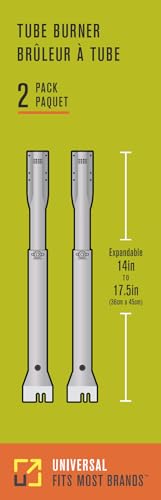 Quemador de tubo de acero inoxidable universal para reemplazar quemadores en la mayoría de las parrillas con profundidad de 14.25″ a 17.25″. Dos quemadores en cada paquete. Consulte la información adicional a continuación.