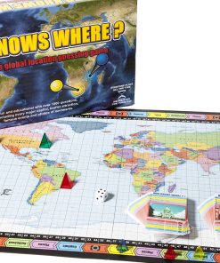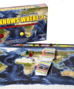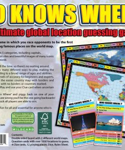 Compite contra tus oponentes para ser el primer jugador en viajar alrededor del mundo localizando lugares famosos en el mapa mundial. Este brillante juego de mesa tiene más de 1000 preguntas en 5 categorías, incluyendo capitales, ciudades y pueblos importantes, eventos y datos, lugares turísticos famosos e imágenes hermosas de muchos hitos icónicos y es una excelente manera divertida de aprender sobre nuestro mundo. Es rápido y simple de jugar, con todos jugando todo el tiempo, por lo que no hay tiempo de espera. Divertido y educativo con reglas flexibles que permiten muchas formas diferentes de jugar, haciendo el juego más fácil o más difícil y, por lo tanto, accesible y atractivo para una amplia gama de edades y habilidades. Hay tarjetas de preguntas fáciles y difíciles, niveles ajustables de precisión para principiantes y expertos, y un tablero de doble cara que le permite jugar en el mapa del país más fácil con fronteras y países nombrados o en la imagen satelital más desafiante sin fronteras ni países marcados. Aterriza en una de las 4 esquinas de la Tierra para un Juego de Poder y usa tu tarjeta de pista cuando tengas dudas para obtener ventaja. Si no puedes adivinar, puedes pensar en «¿Quién sabe dónde?» y subirte a la espalda de una de las conjeturas de tu oponente, pero elige sabiamente porque si están equivocados, ¡serás tú quien retroceda! Con una gran combinación de conocimientos, tácticas y suerte, todos los jugadores pueden ganar. ¿Quién sabe dónde es un juego de mesa adictivo que es muy divertido para todos y es esencial para cualquier persona curiosa acerca del mundo. Contenidos: Tablero de doble cara con 2 mapas mundiales diferentes. Tarjetas de preguntas fáciles y difíciles con más de 1000 ubicaciones para adivinar 4 tarjetas de pista 8 fichas Dados Hoja de reglas Un juego de mesa fantástico para 2 a 4 jugadores o equipos. Edad recomendada de 12 a 100 años
