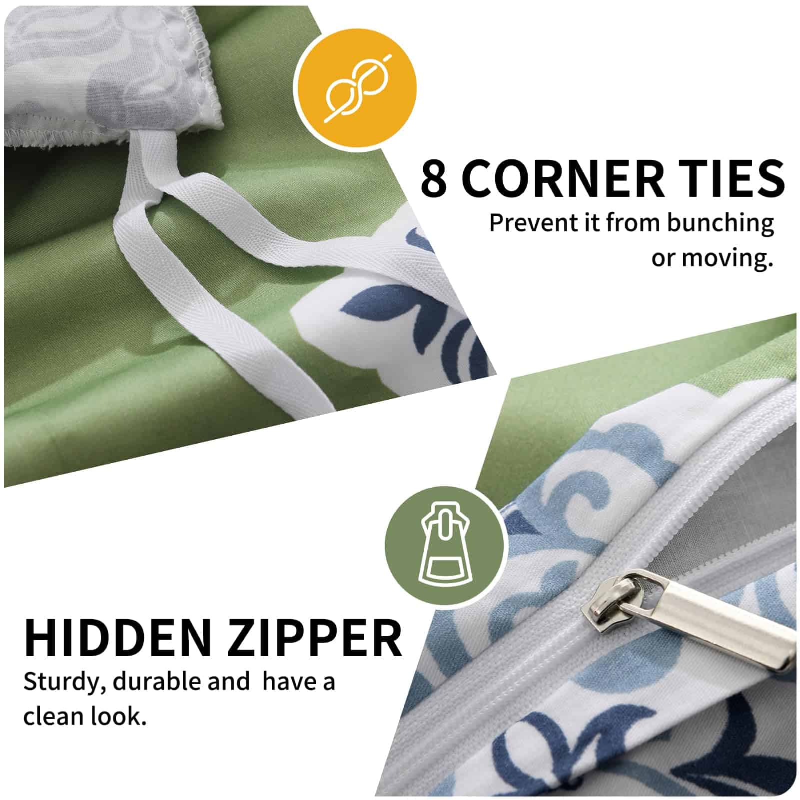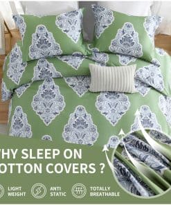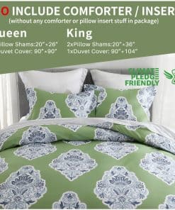 1. Juego de funda de edredón de algodón 100% Quilta lavado elige algodón 100% como material natural, es amigable con la piel, lavable a máquina y nunca se desvanece. Tiene una buena transpirabilidad, asegúrate de sentirte cálido en el clima frío y fresco en el clima cálido, nunca te sentirás sudoroso, la tela de algodón puede absorber la humedad para ajustar tu clima de confort en todas las estaciones durante tu sueño. 2. CIERRE DE CREMALLERA Y 8 LAZOS EN LAS ESQUINAS En comparación con los botones tradicionales, el cierre de cremallera oculto permite insertar fácilmente tu edredón en la funda y mantenerlo seguro sin moverse ni amontonarse. Los ocho lazos en las esquinas con material natural pueden mantener el edredón fijo en la funda y en su lugar, el lazo no se caerá y se puede usar de forma segura. Nuestro juego de funda de edredón puede proteger eficazmente tu edredón y almohada de arañazos y rasgaduras. 3. PATRÓN VINTAGE DE DAMASK Mejora tu dormitorio con nuestra funda de edredón y experimenta la esencia de la elegancia y el lujo europeos. Transforma tu espacio en un remanso de tranquilidad y disfruta de la belleza atemporal de nuestro patrón de medallón damasco. Es hora de elevar tu experiencia de dormir a nuevas alturas. 4. ESTÁNDAR 100 POR OEKO-TEX Tenemos la certificación OEKO-TEX Standard 100. El proceso de producción de la funda de edredón boho cumple con los estándares internacionales. Nos aseguramos de que la calidad del juego de funda de edredón sea premium y los consumidores puedan usarlo de forma segura. 5. INSTRUCCIONES DE CUIDADO Lavar a máquina por separado en agua fría con colores similares. ¡Por favor, no usar lejía! Rodar a baja temperatura o secar a la sombra, materiales de alta calidad con resistencia a las arrugas, hermosa textura natural, ¡no planchar! Se recomienda que esta funda de edredón de algodón se lave antes del primer uso. 6. ¿QUÉ RECIBIRÁS? 1 funda de edredón tamaño king: 90″ x 104″ + 2 fundas de almohada: 20″ x 36″ (Sin edredón). El juego de funda de edredón king no es un juego de edredón, sin ningún relleno de edredón o almohada en el paquete. El juego de funda de edredón de Quilta con un embalaje exquisito también es un excelente regalo para bodas, cumpleaños, Navidad, fiestas y más.