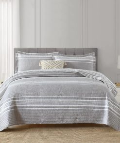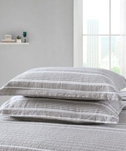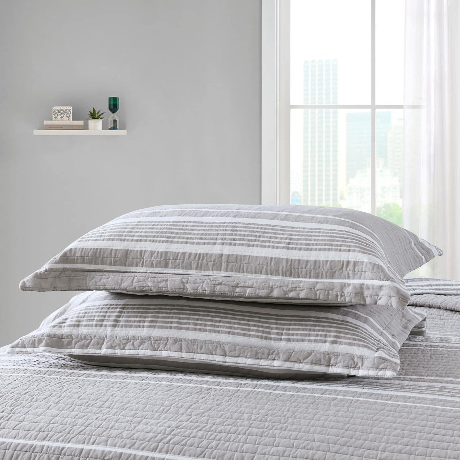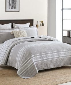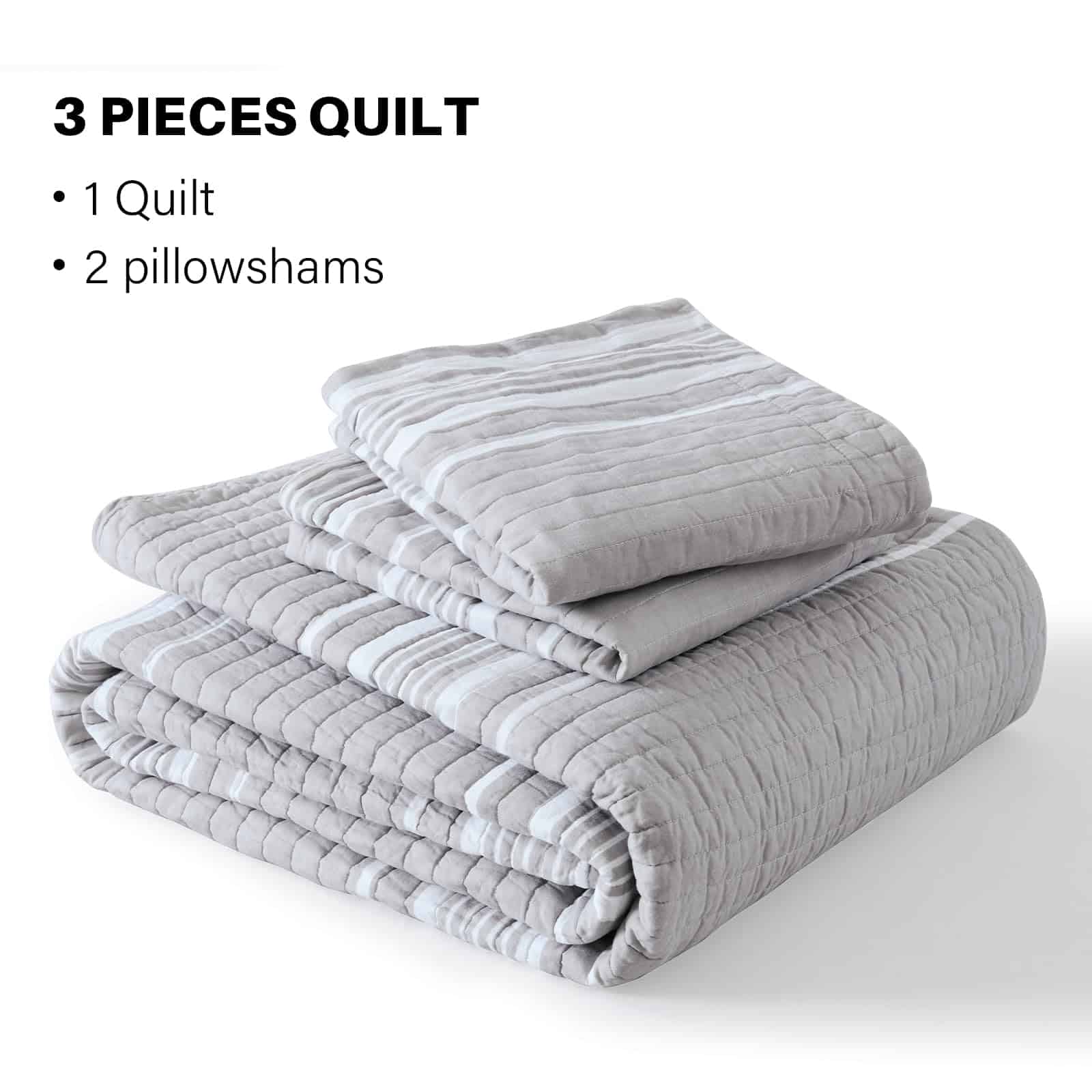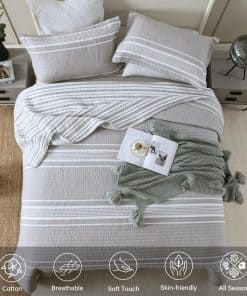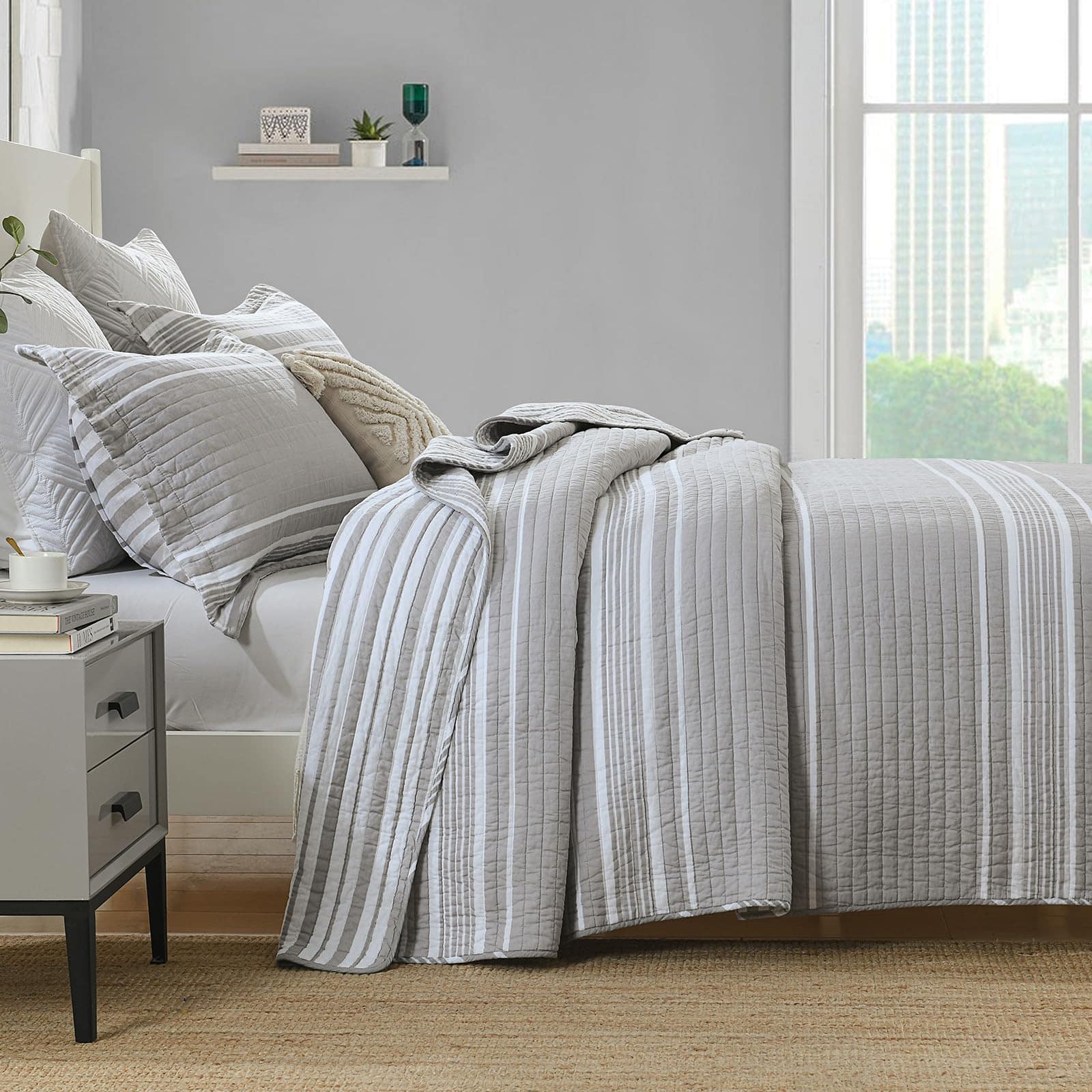 Quilta Juego de Edredón 100% Algodón Tamaño Queen – Colcha Ligera Acolchada, Gris/Blanco