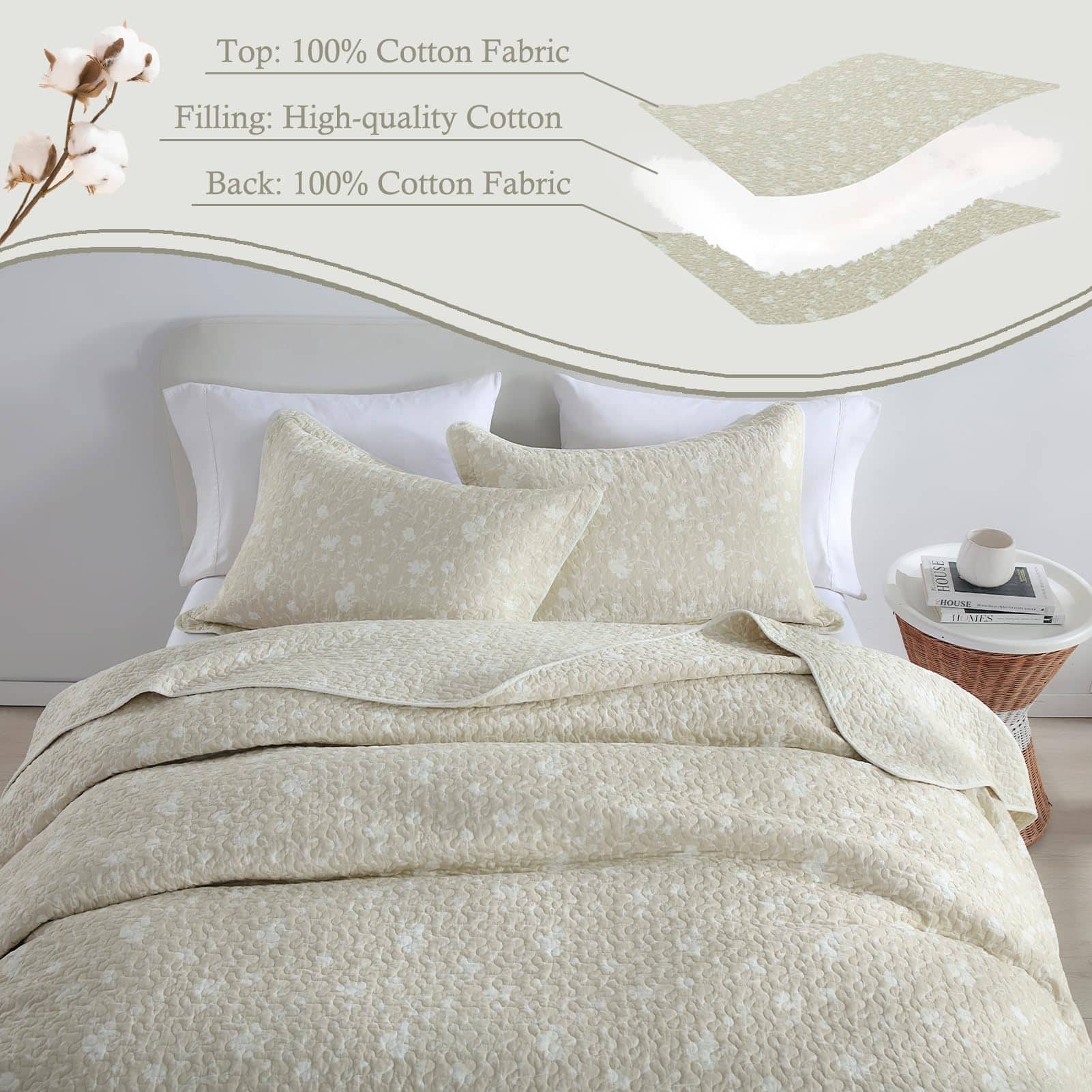 QuiltMuse Juego de Colcha Floral Tamaño Queen – Set de