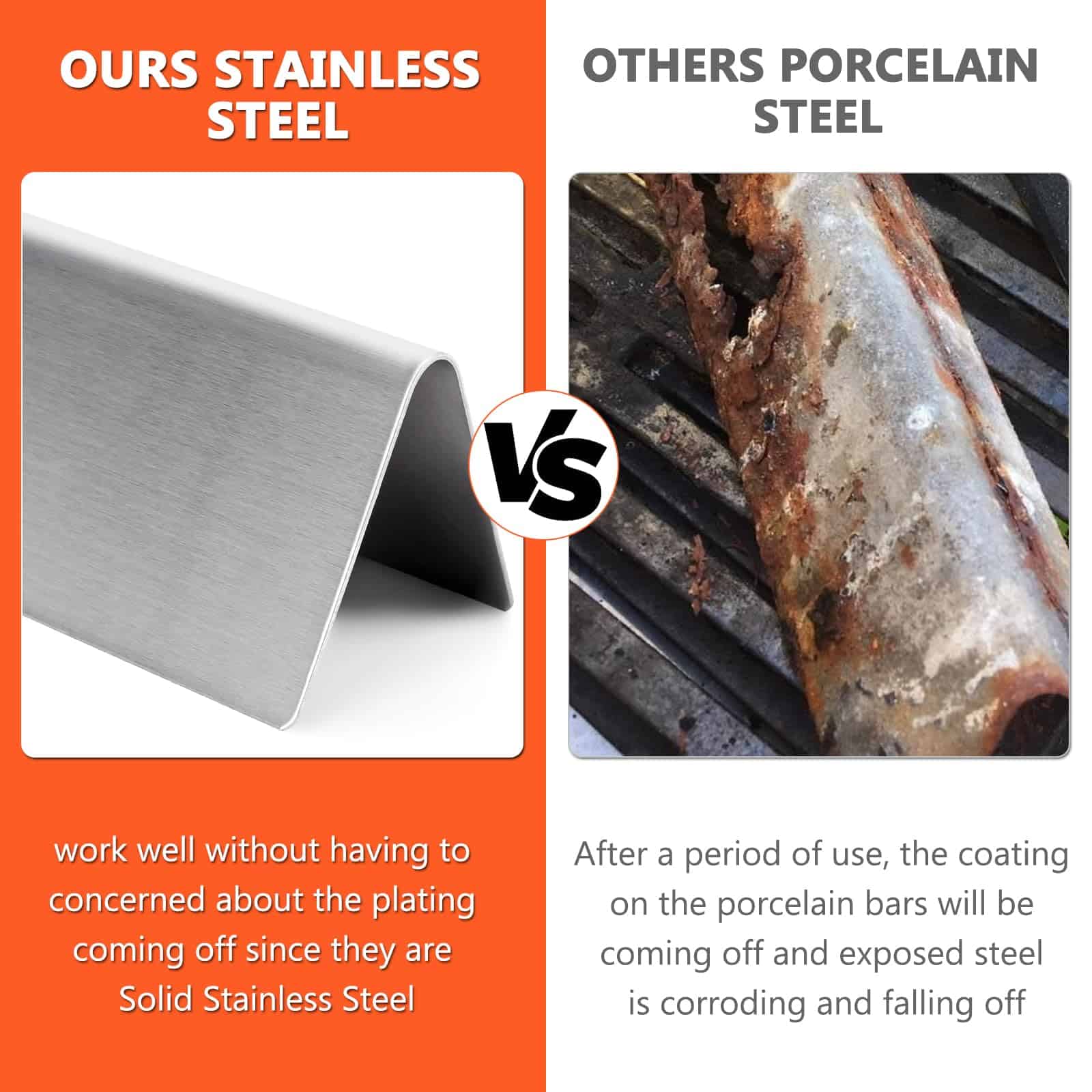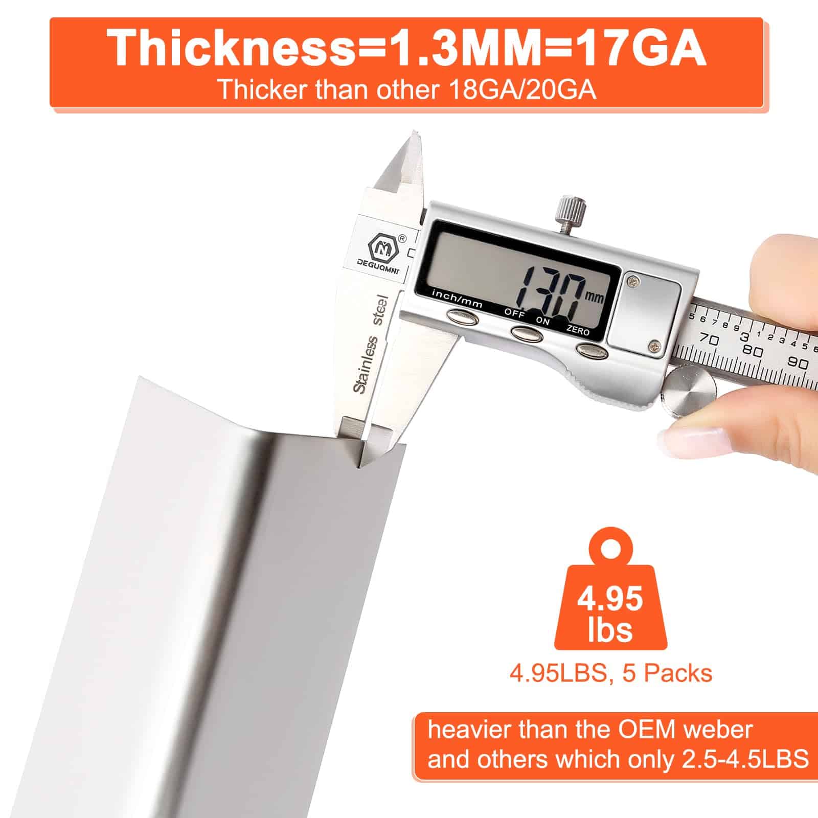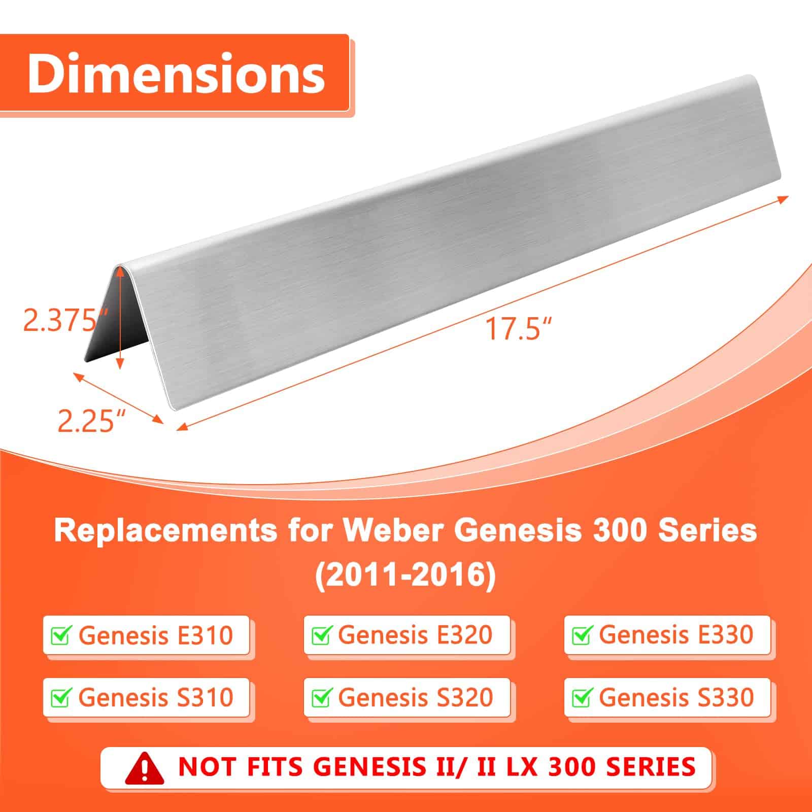 1. COMPATIBILIDAD: Las Barras Saborizantes de Repuesto para Weber Genesis 300 Propano (LP) Serie incluye Genesis E/S 310, 320 y 330 (2011-2016) con perillas de control montadas en la parte frontal. Los modelos detallados son: E310, E320, E330, EP310, EP320, EP330, S310, S330, CEP310, CEP320, CEP330 años de modelos 2011-2016. NO se ajusta a las series Weber Genesis II 300 y Genesis II LX 300. 2. DIMENSIONES: Las barras saborizantes para la serie Weber Genesis 300 miden 17.5 x 2.25 x 2.375 pulgadas, meticulosamente diseñadas para adaptarse perfectamente a su parrilla Weber Genesis E-310. Nuestro paquete incluye 5 barras saborizantes de acero inoxidable. 3. ESPESOR 17GA: Con un diseño de espesor 17GA, es notablemente más grueso en comparación con las barras saborizantes comunes de 18GA – 20GA. Esto significa que es más robusto y duradero, capaz de soportar la parrilla a altas temperaturas y un uso frecuente, protegiendo su parrilla y acompañándolo en largos tiempos de cocción al aire libre. 4. PESO MEJORADO, DEMOSTRANDO CALIDAD: Las barras saborizantes de la parrilla QuliMetal especialmente personalizadas para la parrilla Weber Genesis E-310 pesan 4.95 libras. Este peso sustancial no solo representa materiales sólidos, sino que también refleja nuestra búsqueda final de calidad, haciendo que su parrilla sea más estable durante el uso y logrando resultados de parrilla sobresalientes. 5. MATERIALES AUTÉNTICOS, RESISTENTE A LA OXIDACIÓN Y LA CORROSIÓN: Hecho de acero inoxidable de servicio pesado y material no magnético, posee una súper resistencia a la corrosión y al calor. Diga adiós a los problemas de barras de esmalte que se astillan y oxidan fácilmente. Las barras saborizantes de acero inoxidable QuliMetal siempre se mantienen nuevas, son firmes y duraderas, y son extremadamente fáciles de limpiar, solo un paño y quedará impecable, haciendo que su limpieza después de la parrilla sea muy sencilla.