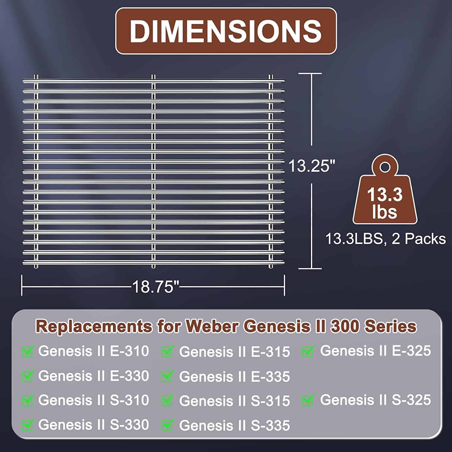 QuliMetal 18.75″ Parrillas para Weber Genesis II 300 & GS4