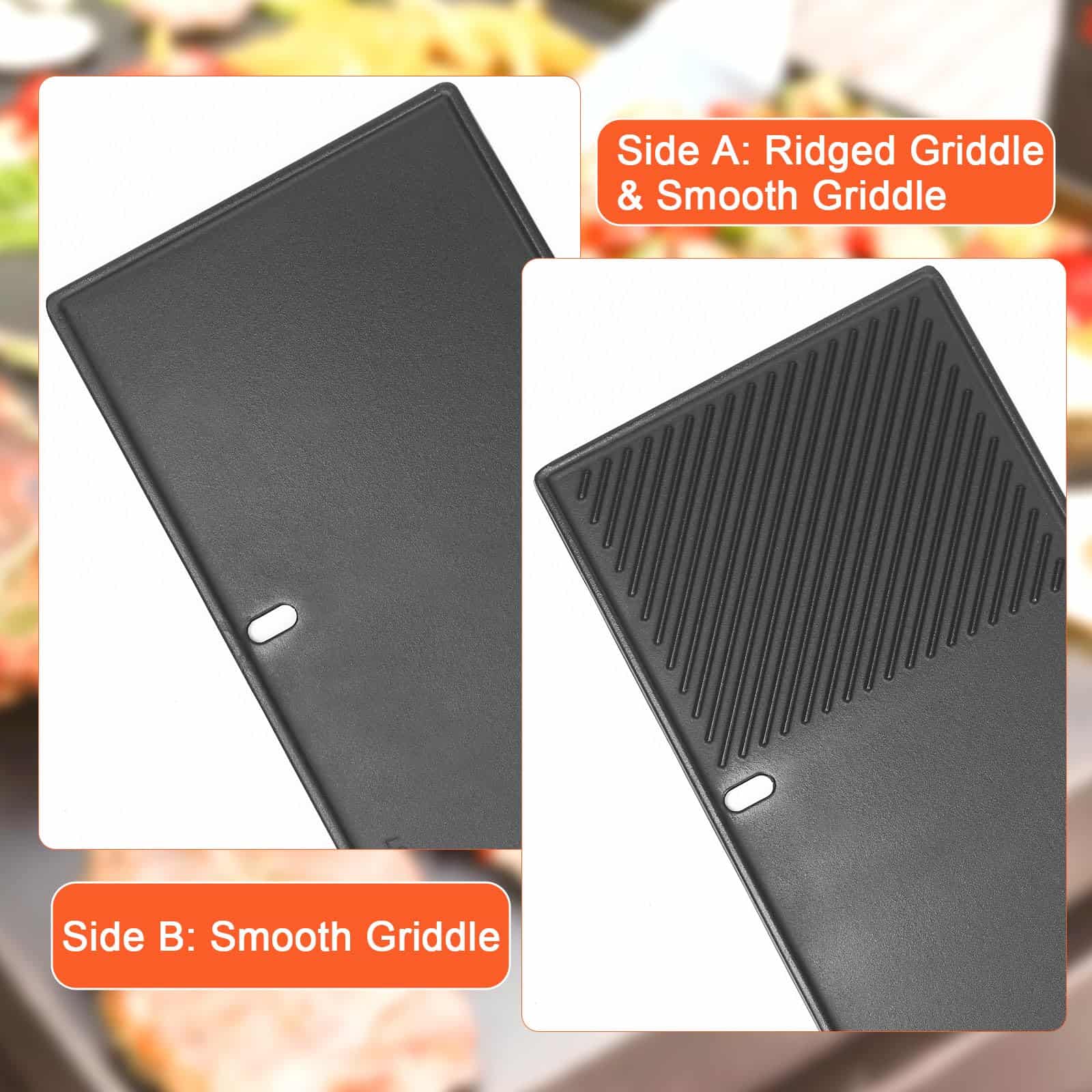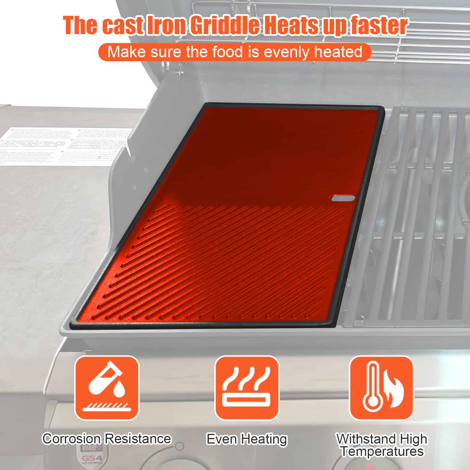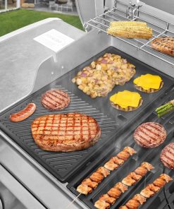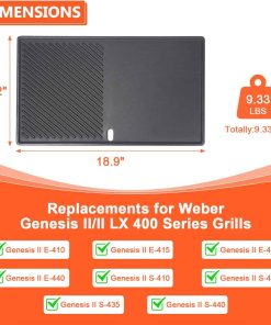 Esta parrilla para Weber Genesis II/LX 400 Series es la pieza perfecta para cocinar una gran variedad de alimentos en su barbacoa. Su construcción en hierro fundido garantiza una durabilidad excepcional y una distribución de calor uniforme para una cocción rápida y perfecta. Con su versatilidad de doble cara, puede cocinar desde huevos y panqueques hasta carne y verduras con las marcas de parrilla perfectas. Mantenga la parrilla bien aceitada después de cada uso para mantener su rendimiento óptimo y prolongar su vida útil. Confíe en este producto de calidad para llevar su experiencia de parrilla al siguiente nivel.