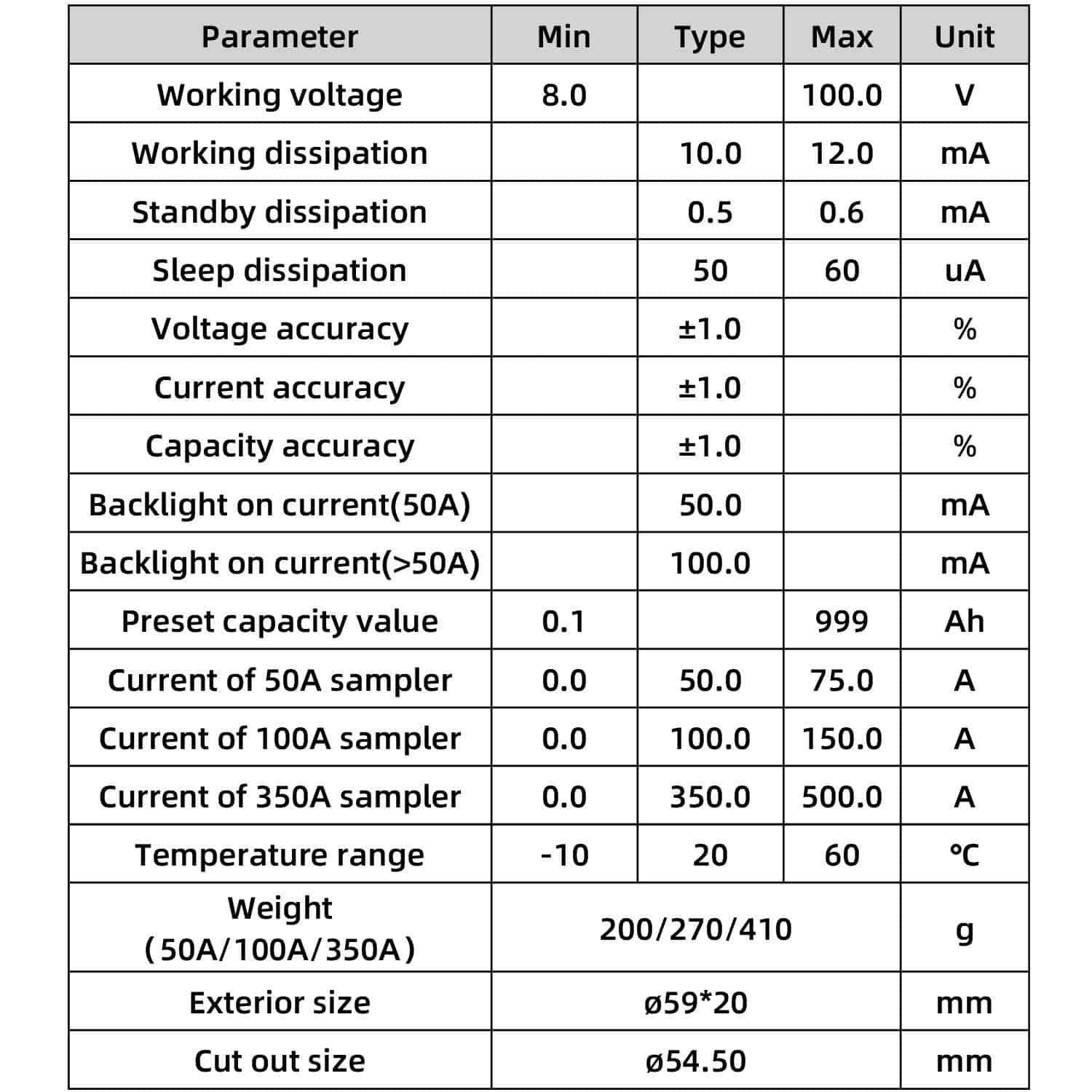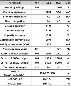 4. Capacidad de voltaje – rango de voltaje 8V-80V y rango de corriente 0-100A.