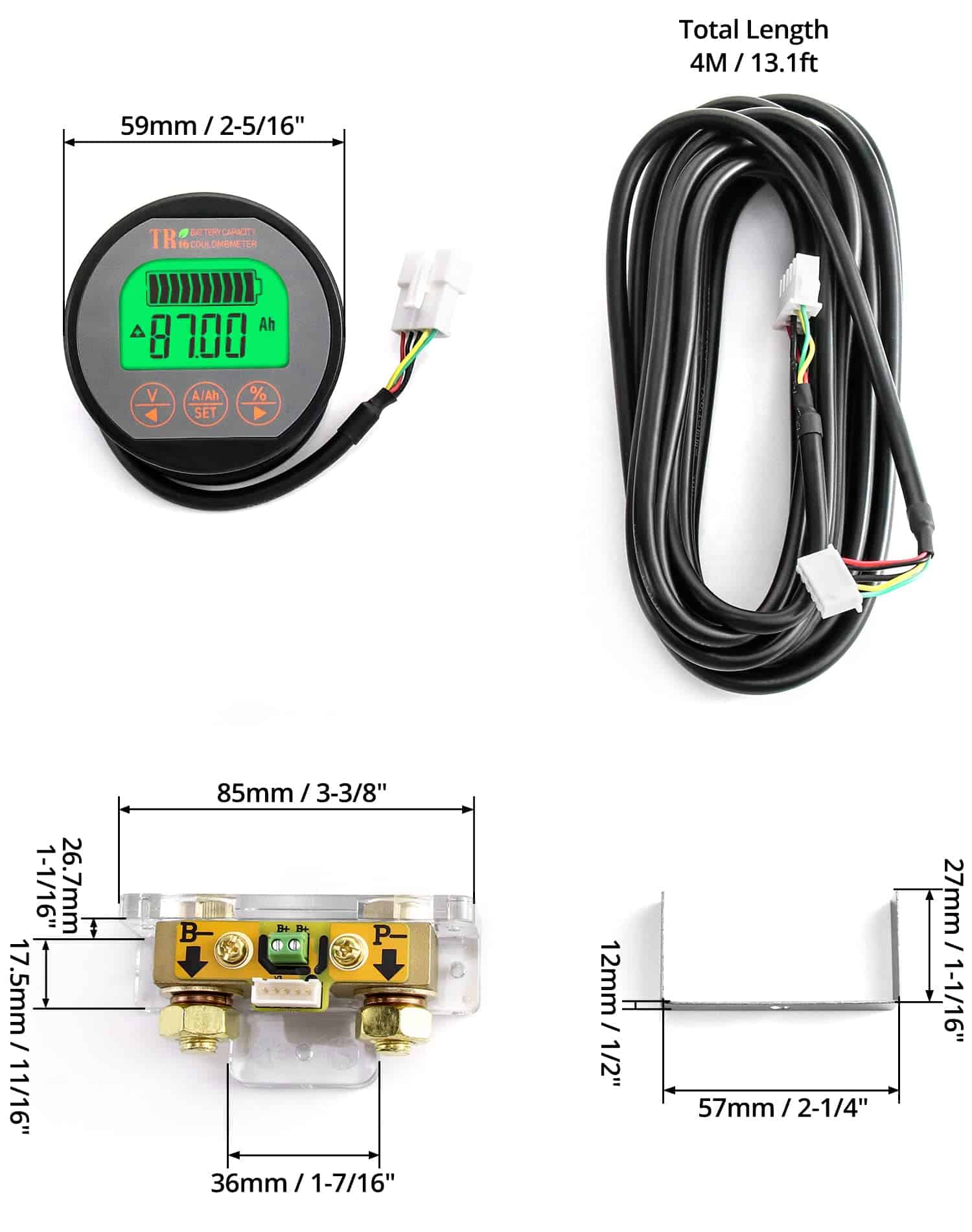 1. Condiciones de la batería – Detección de corriente de alta precisión. Puede leer el banco de baterías como un medidor de combustible, y además notar claramente el estado de la batería.