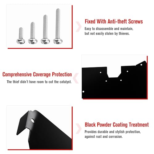 5. Incluye: 1 juego de protector antirrobo de convertidor catalítico, accesorios de instalación completos e instrucciones de instalación. Fácil de instalar por ti mismo, y solo necesitas un gato para levantar tu auto.
