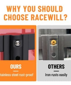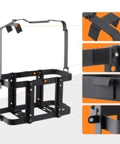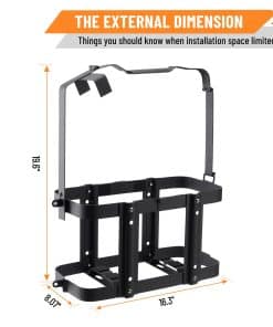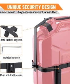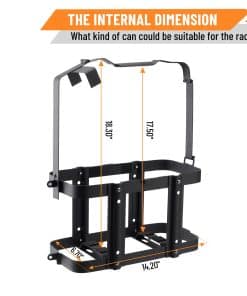 Soporte de montaje para bidón de gasolina Racewill: Mantén tu bidón de gasolina seguro y protegido con este soporte de montaje antirrobo. Fabricado en acero laminado en frío de alta calidad, cuenta con un diseño único antirrobo con una U-bayoneta y tornillos antirrobo de acero inoxidable de flor de ciruela para proteger tu bidón. Las dimensiones internas son 6.8 x 14.3 x 17.5 pulgadas y las dimensiones externas son 8.07 x 16.7 x 19.6 pulgadas. Fácil de instalar, desmontable, diseño resistente y que ahorra espacio. Con recubrimiento en polvo negro para una mayor resistencia a la corrosión. ¡Aumenta tu rango, ideal para tu próxima aventura!
