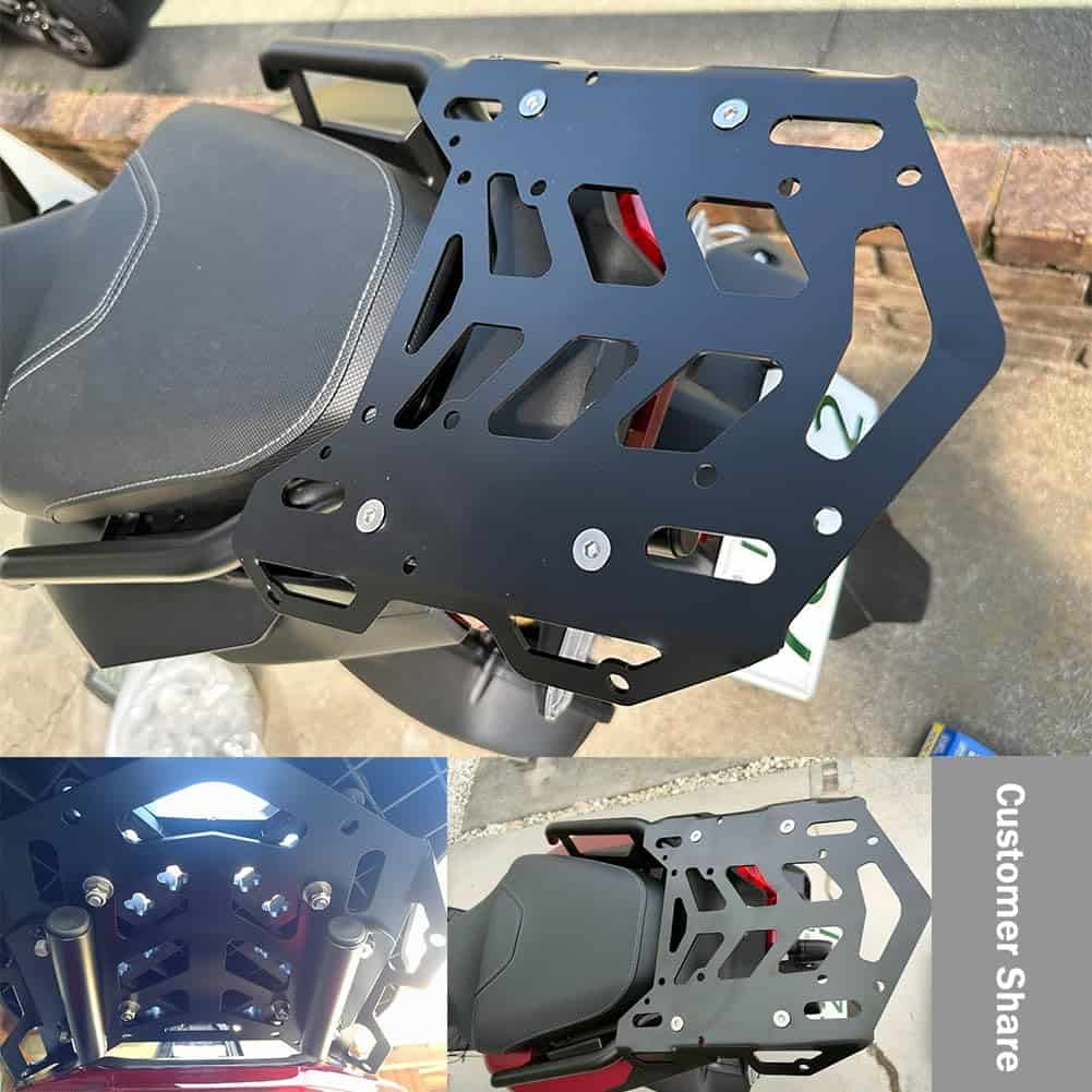 Material: El adaptador de estantes de almacenamiento trasero se hace de acero al carbono premium, antioxido y duradero incluso con exposición al sol y la lluvia.