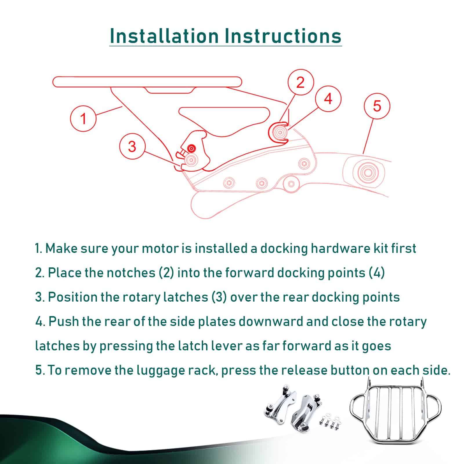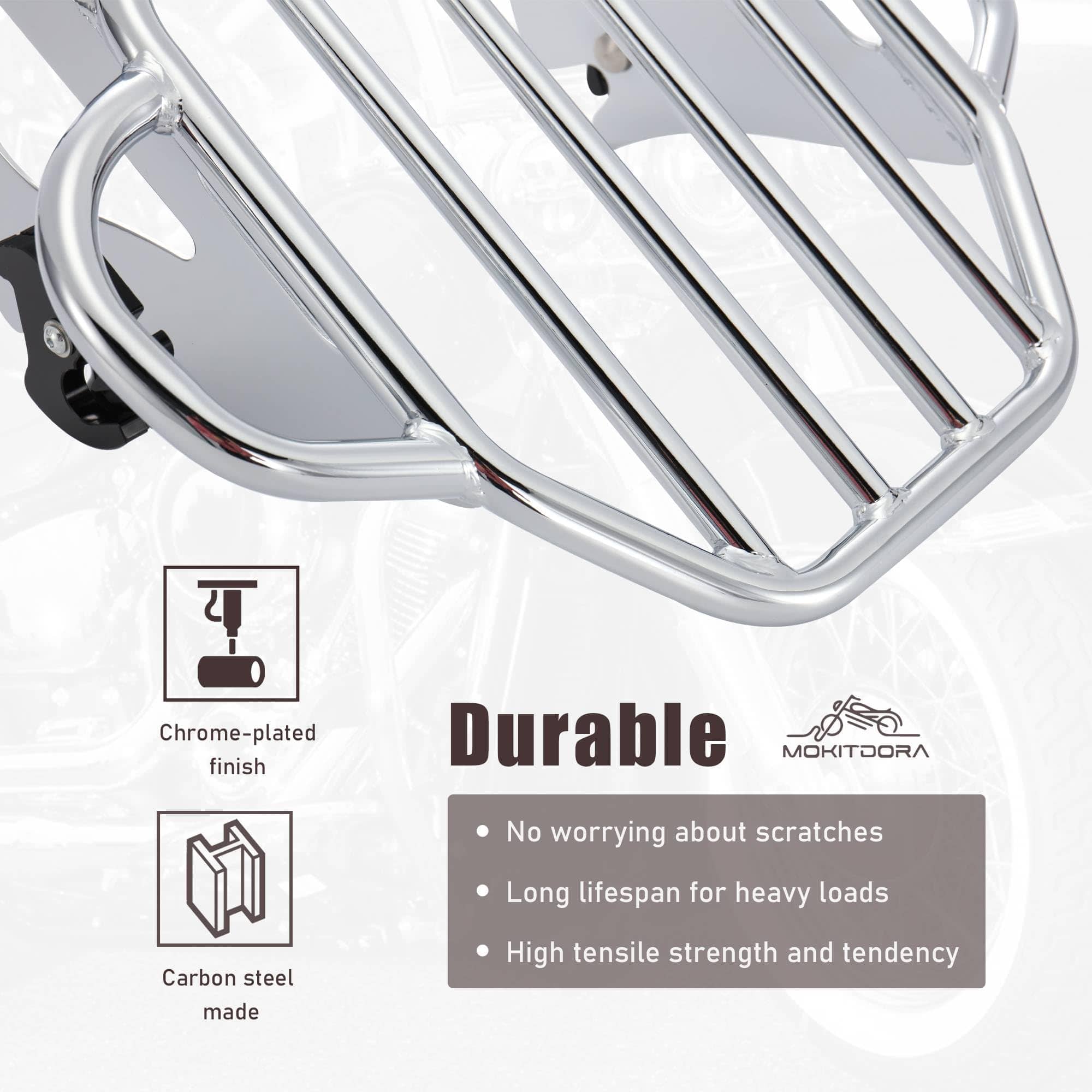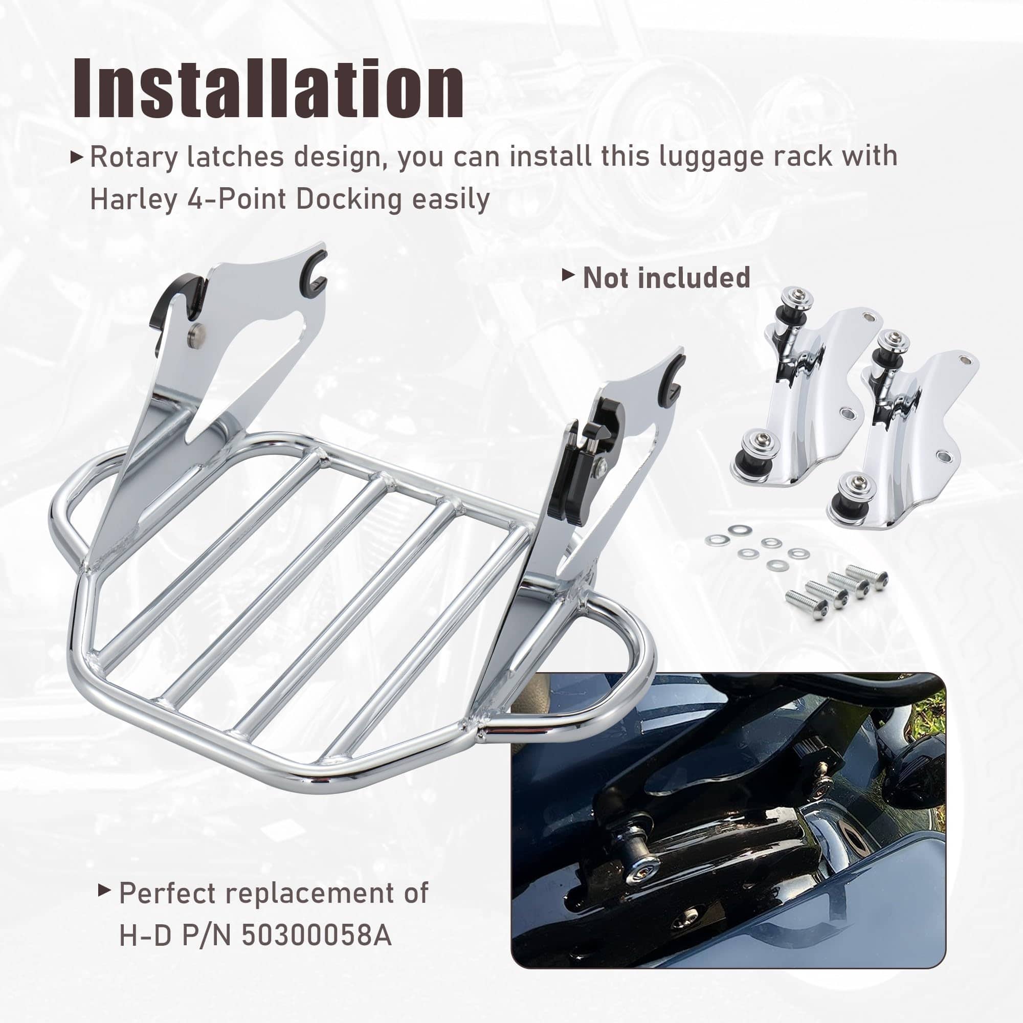 Reemplazo premium de mercado secundario ajustable estante de equipaje desmontable de dos plazas compatible con Harley Touring 2009 en adelante Road King, Road Glide, Street Glide y Electra Glide Models (excepto ’24-later FLTRXSTSE). Este estante de equipaje es perfecto para aquellos que buscan una solución duradera y confiable para transportar equipaje durante sus viajes en motocicleta. Construido con acero al carbono y una superficie recubierta en polvo, este estante de equipaje garantiza una resistencia a la corrosión y una durabilidad excepcionales para soportar los rigores de la carretera. Su diseño versátil en forma de arpa plana ofrece la posibilidad de asegurar varios tipos de equipaje de forma segura, brindando a los motociclistas una solución práctica y fácil de usar para sus necesidades de transporte. Compatible con el hardware de acoplamiento de 4 puntos de Harley, la instalación de este estante de equipaje es rápida y sencilla, lo que permite a los usuarios personalizar su motocicleta de manera conveniente. Con una capacidad de equipaje de 30lb, este estante de equipaje proporciona suficiente espacio para las necesidades diarias sin comprometer la seguridad. La superficie cromada no solo mejora la resistencia a la corrosión, sino que también realza la estética general de la motocicleta, protegiendo el estante de la oxidación y manteniendo un aspecto pulido. La construcción robusta de acero al carbono garantiza la estabilidad y resistencia del estante durante los paseos, proporcionando a los motociclistas la confianza en la seguridad de su carga. Además, el diseño aerodinámico de este estante de equipaje minimiza la resistencia al viento, mejorando la eficiencia de combustible y el manejo de la motocicleta. Respaldado por un servicio al cliente disponible las 24 horas, los clientes pueden contar con asistencia y soluciones satisfactorias para cualquier pregunta o problema que puedan surgir durante el uso de este estante de equipaje.
