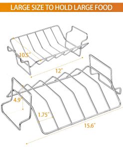 3. Rack de costillas de acero inoxidable de alta calidad para alimentos de grado alimentario: Este rack está fabricado con una construcción sólida, de acero inoxidable de alta calidad, grueso y resistente, durabilidad duradera. ¡Perfecto para hacer costillas, pavo en el Día de Acción de Gracias!