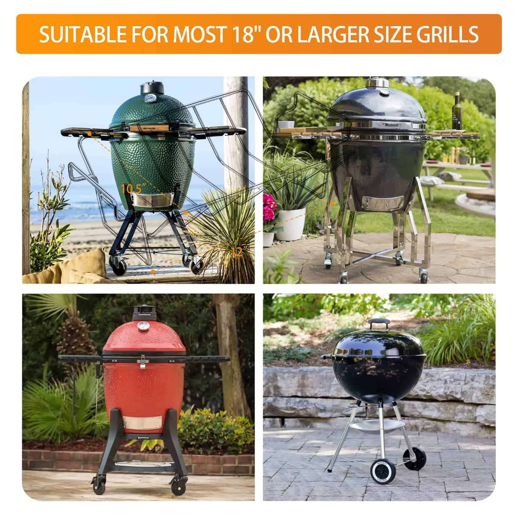 4. Ajuste para parrillas de 18 pulgadas o más grandes: Perfecto para Big Green Eggs Large & XLarge, Prime, parrillas de cerámica Kamado. ¡Genial para Weber, Pit Boss pellet smoker, parrilla Traeger, horno de panadero y otras parrillas grandes de exteriores!