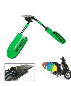 Racks de surf para 2 ruedas motorizadas, ideal para transportar tu tabla de surf en tu scooter o motocicleta. El modelo Deluxe de Pat Rack se adapta a todas las motos con 2 ruedas que tengan un portaequipajes. Peso máximo: 7 kgs. Dimensiones del Rack: 12 x 6 pulgadas (30cm x 15cm). PAT RACKS se especializa en fabricar los mejores racks de tablas Para usar con 2 ruedas motorizadas CON PORTAEQUIPAJES. Diseñado para tablas cortas, bodyboard, skimboard Brazos acolchados dobles y seguros de 12mm de grosor Color verde alien para mayor seguridad Espuma protectora gruesa Instalación rápida y fácil, se acopla directamente al poste del asiento Peso máximo 15.4 libras (7 kgs).