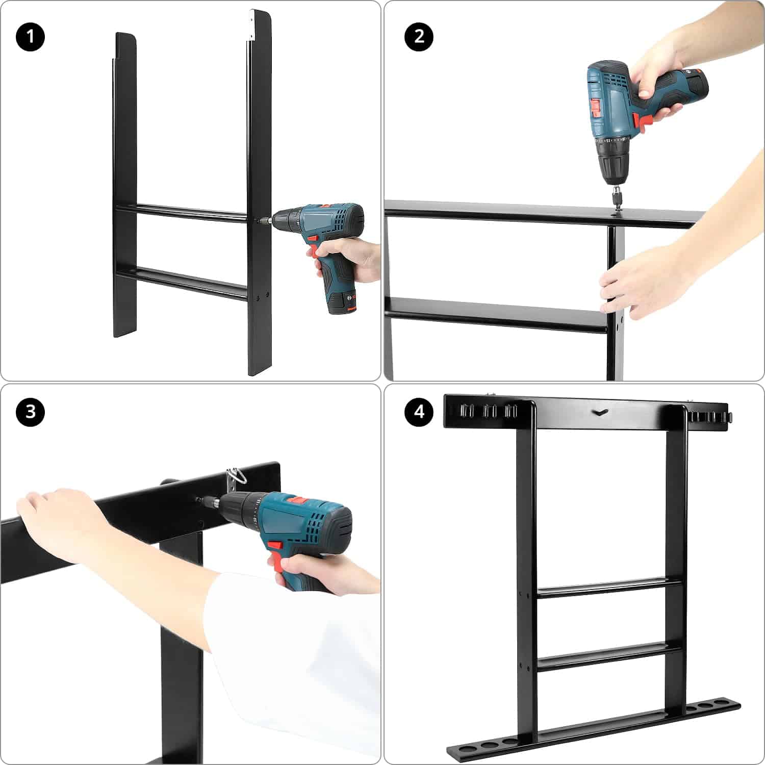 3. Montaje sencillo: Equipado con todo el hardware de montaje necesario y soportes en forma de L, la instalación es rápida y sencilla. El gancho incluido también proporciona un lugar conveniente para colgar su rack de billar, manteniendo todo lo que necesita al alcance.