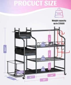 2. CAPACIDAD GRANDE PARA FITNESS: Este rack de almacenamiento es una versión actualizada que está equipada con no solo 3 capas de malla metálica, un canasto lateral, un soporte de hierro de 3 secciones para diversos equipos de entrenamiento y equipo de ejercicio, sino también un rack extra de tela Oxford para toallas de gimnasio.