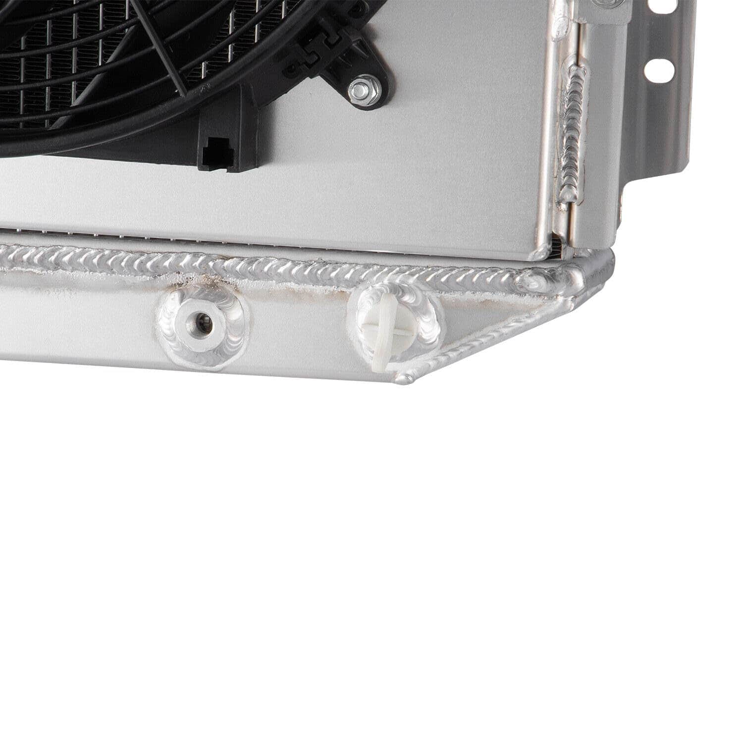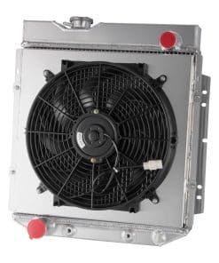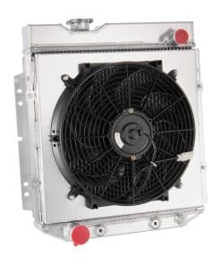 Paquete Incluye: 1 Radiador de aluminio de 3 filas, 1 Carcasa de aluminio, 1 Ventilador de 14» (Incluye kits de montaje). Este Radiador Tamaño: Número de filas: 3 filas Tamaño del núcleo: 16-1/2 pulgadas x 17 pulgadas Tamaño total: 21-3/4 pulgadas x 19-5/8 pulgadas Entrada superior: 1-1/2 pulgadas ubicada en el lado del pasajero. Salida inferior: 1-3/4 pulgadas ubicada en el lado del conductor. Enfriador de aceite de transmisión: 26 150 1/8-27NPT T. Este Radiador se ajusta a: Compatible con MERCURY Comet V8 Swap 1961-1965 Compatible con Econoline Comet V8 Swap 1961-1965 Compatible con Ford Falcon V8 Swap 1960-1965 Compatible con Ford Ranchero V8 Swap 1960-1965 Compatible con Ford Mustang V8 Swap 1965-1966 Aplicaciones de motor incluyen: 302ci, 351ci, 390ci 428ci, 429 Aplicaciones de motor: 5.0L, 302ci, 351ci, 390ci, 428ci, y 429ci V8 ÚNICAMENTE. Especificación del Ventilador: Diámetro: 14» (Hoja a hoja) Voltaje: CC de 12 voltios Potencia: 80W Número de hojas: 8 hojas tipo S CFM máximo del ventilador: 2250cfm RPM máximo del ventilador: 2000 10% Grosor del ventilador: 2.64» Diseño de empuje de hoja tipo S, para hacer que el flujo de aire sea más eficiente y brinde un efecto de enfriamiento mayor. El potente motor de 80 vatios mantendrá su motor fresco.