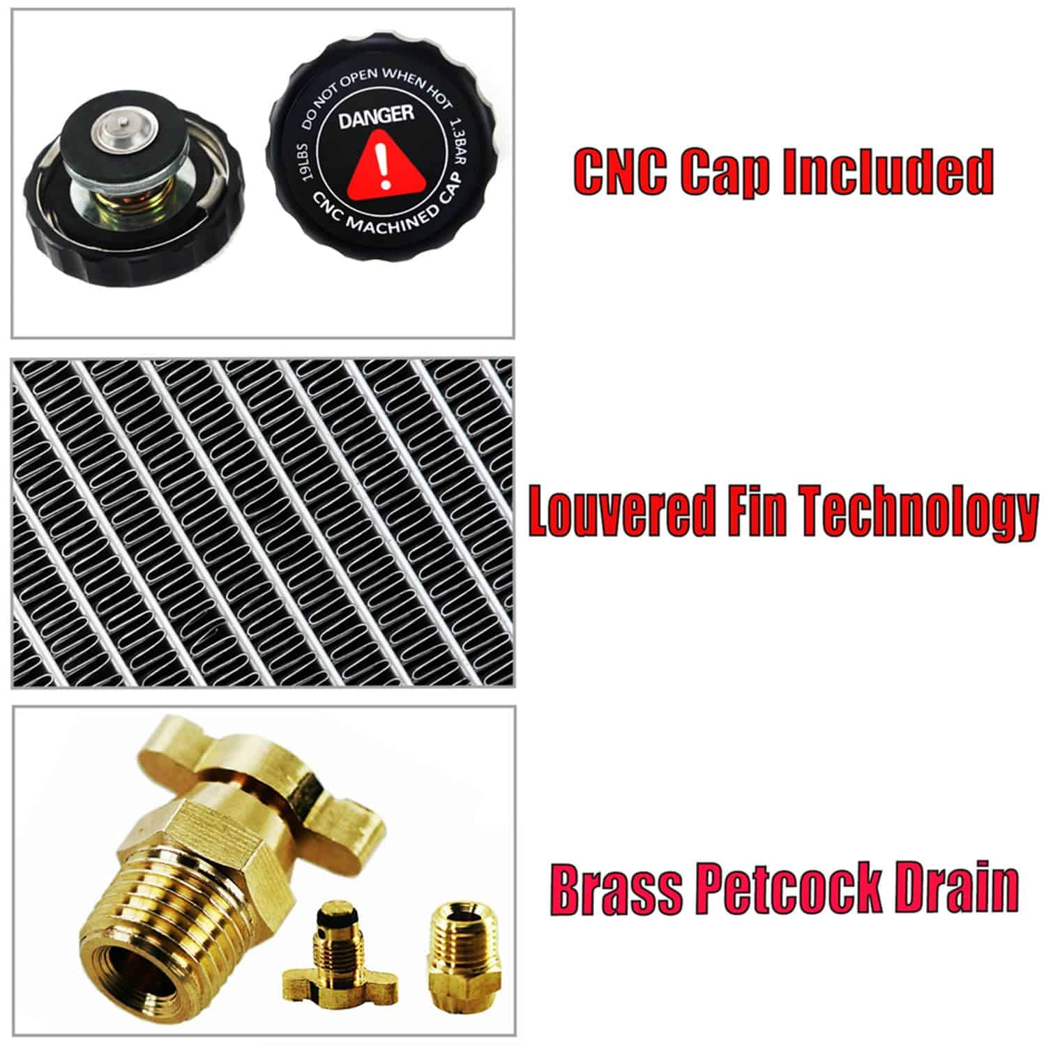 Bienvenido a nuestra tienda~ KUUHLERSAT ¡Esperamos que tengas una experiencia de compra agradable!. Gracias por elegirnos, ¡que tengas un gran día!. Promesa: Si hay algo mal con tu compra por favor háznoslo saber y haremos todo lo posible para solucionarlo. Gracias por tu cooperación. Este Radiador es Compatible con: Para Toyota 4Runner V6 3.4L del 1996-2002 Para Toyota 4Runner L4 2.7L del 1996-2000 Reemplaza Número de Parte: CU1998, 1998, 2207 Número de Interchange: DPI 1998, CU1998, Q1998, RAD1998, 1640075160, 1640075180, 1640075181, 16410YZZAJ. Tamaño del Radiador: Tipo: Radiador de Aluminio Especificaciones de Alto Rendimiento 3-Hileras de Diseño de Carreras Material: Núcleo y Tanque de Aluminio Completo Acabado de Superficie: Aluminio Pulido Elementos Incluidos: Tapa Estilo de Montaje: Perno en Tipo de Ajuste de Montaje de Reemplazo Directo Rendimiento: Hasta un 30%-45% de Refrigeración Artes: 100% Soldadura Tig, No Epoxi, Válvula de Desagüe del Radiador: Válvula de Drenaje de Latón Estilo OEM Tapa del Radiador: Incluye CNC Mecanizados Billet y Tapa de Radiador de Alta Presión 1.3 Bar Funciones: 100% Probado de Fugas, 3 Hileras, Radiador de Flujo Descendente, Probado de Durabilidad, No se Necesita Perforar o Modificaciones para la Instalación Radiador KUUHLERSAT: 1. Hecho de Aluminio de Grado T-5052 para una larga vida útil y con acabado de aluminio en bruto. 2. Tecnología de Núcleo Soldado a la Brazada para garantizar un rendimiento y confiabilidad óptimos. 3. Tanques y accesorios de Aluminio AA5052 de 2 mm de espesor, Asegura que sea resistente y duradero. 4. Núcleo de mayor densidad: las filas de enfriamiento están espaciadas a 3/8″ de distancia. Dándote 25% más de filas dentro del núcleo que otros radiadores de aluminio. 5. 14-16 aletas de enfriamiento por pulgada, dándote aproximadamente 1500 aletas de enfriamiento más que otros radiadores de aluminio, emite mucho más calor. 6. Cuidadosamente elaborado según estándares OE excepcionales para un ajuste preciso. Descripción: Este Radiador de Aluminio AA5052 está diseñado para proporcionar una eficiencia de refrigeración máxima para prevenir fallas prematuras del motor. Su diseño ligero y de aluminio de alta transferencia de calor presenta un diseño de tubo y aleta que aumenta drásticamente la superficie que permite que el calor se disipe de manera más eficiente. Este Radiador de Aluminio AA5052 es al menos un 30%-45% más eficiente que los originales. Lo más importante es que tiene una capacidad mucho mayor para el refrigerante que los originales, lo que significa que tu sistema de refrigeración será más eficiente y será más resistente a las subidas de temperatura en aplicaciones de carreras