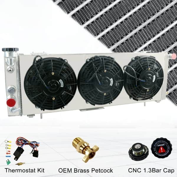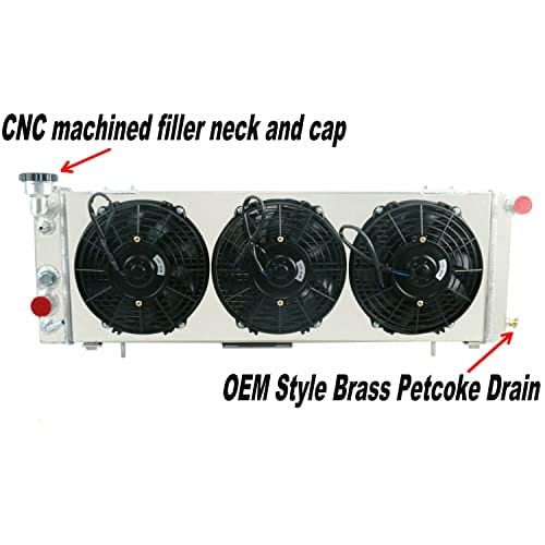 Ajuste Para 1991-2001 Jeep Cherokee 2.5L L4 GAS/4.0L L6 GAS Para 1991-1992 Jeep Comanche 4.0L L6 GAS Detalles del Radiador Recuento de filas: 1 fila Entrada superior: 1.5 pulgadas ubicada en el lado del conductor Salida inferior: 1.25 pulgadas ubicada en el lado del pasajero Acabado de superficie: incluye cuello de llenado y tapa mecanizados por CNC Válvula de drenaje de latón estilo OEM Cuello de llenado y tapa mecanizados por CNC Tamaño de los Ventiladores Flujo de aire máximo del ventilador: 1730 cfm Diámetro del ventilador (pulgadas): 9.75″ Altura del ventilador (pulgadas): 9.75″ Espesor (pulgadas): 2.25″ Número de aspas: 10 aspas RPM máximo del ventilador: 2,250 rpm Material de la cuchilla: plástico Amperios de tracción: 12.70 amperios Incluye las pestañas de montaje para una fácil instalación con bridas Termostato Kit ROJO + conecte directamente a la batería. Cable BLANCO ala fuente de alimentación del interruptor de encendido. CABLE NEGRO va a la perilla del termos. El CABLE AZUL va a los ventiladores. Número de Pieza Número de Pieza del Fabricante: 1193, SBR1193, CC1193, CU1193, DPI1193, 78, CC78, CU78 Número de Pieza de Intercambio:1193, 3251, 8011193, 2671, 2670, 432335