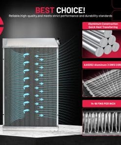 El radiador BDFHYK ofrece un diseño de carreras adaptado a transmisiones AT de alto rendimiento, con diseño de tubos de 3 filas-56mm, válvula de purga de latón estilo OEM, Dimensiones del Núcleo: 28.23″ 18.82″ 2.20″, Dimensiones Totales: 36″ 23″ 6″, Tamaño de Entrada/Salida: 1.50″ 1.57″, Enfriador de Transmisión: 32 215. Compatible con modelos Chevrolet Blazer/C10/C10 Suburban/C15/C20 Suburbano/C30/C35/G10/G20/G30/K10/K10 Suburbano/K20 Suburbano/K30/K5 Blazer/P20/P30/R10/R10 R1500 R20 R2500/R30/R3500/V10/V10 Suburbano/V1500 Suburbano/V20/V20 Suburbano/V2500 Suburbano/V30/V3500. Números de parte compatibles: 716 SBR716 CC716 CU716 DPI716 CU1599 EC716 AE716 MC716 CU1599 1599 B1599 CR1599 B716 1605-370200 CU844 SPTCU716 2308 40385 0AAS0778 433716 438716. El radiador BDFHYK ofrece una garantía de producto de un año y una política de devolución gratuita de 60 días. Se recomienda asegurarse de la compatibilidad del vehículo al seleccionar un producto y confirmar la integridad de la pieza al recibirlo.